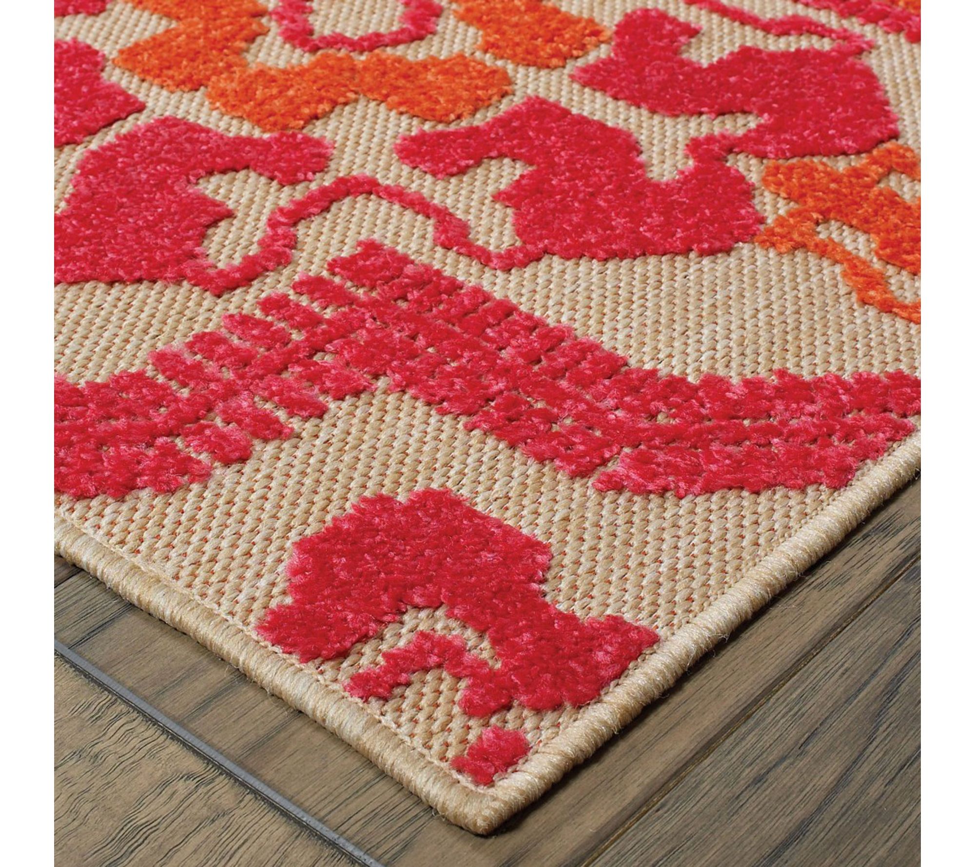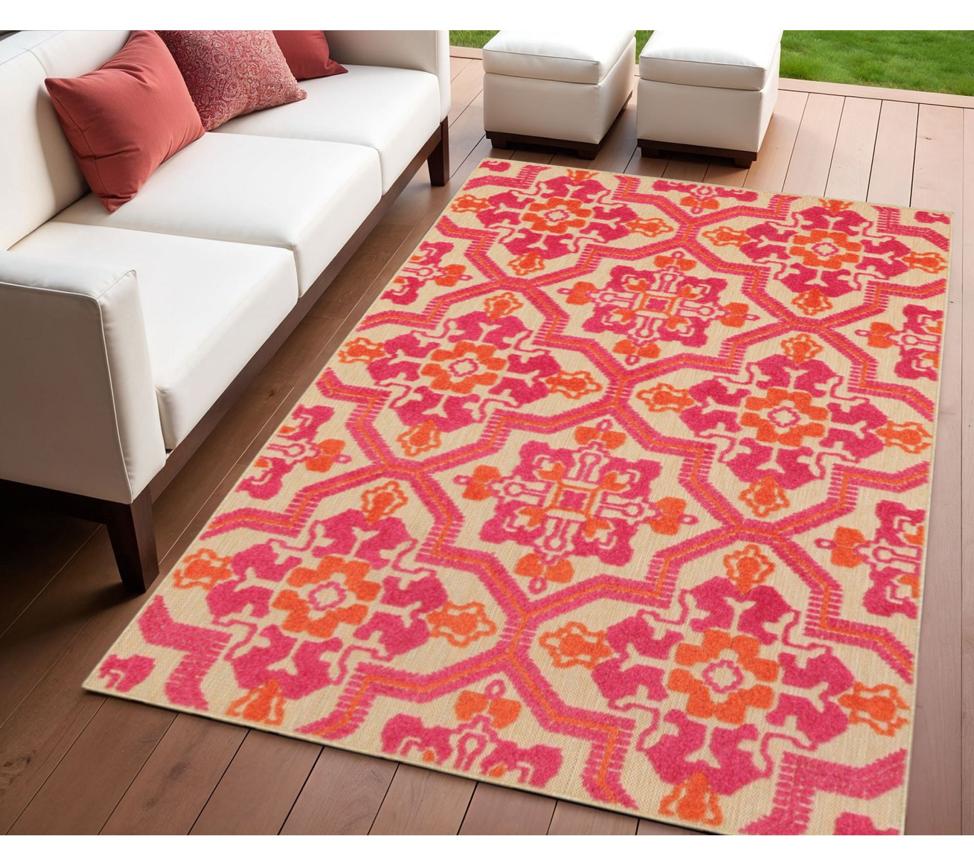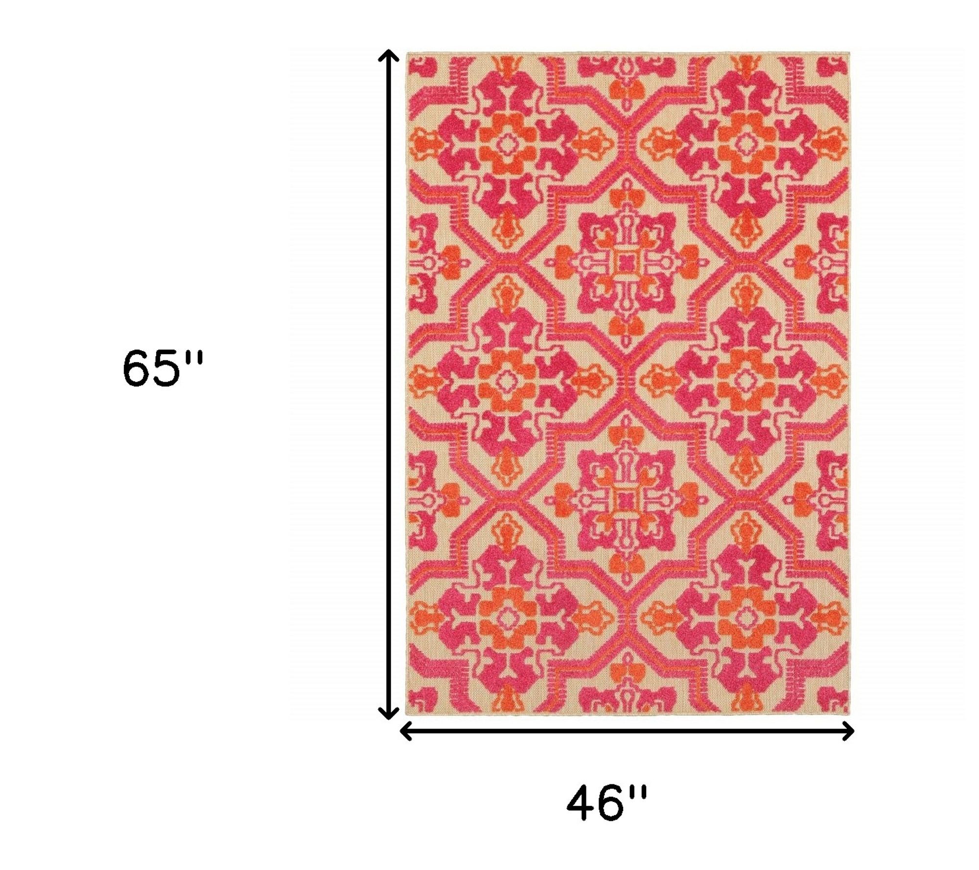 Infuse cheerful energy into your space with this vibrant pink and orange indoor/outdoor rug. The medallion pattern adds a playful, colorful touch to living rooms, patios, or play areas, making it a versatile choice for homes with kids or pets. From HomeRoots.
