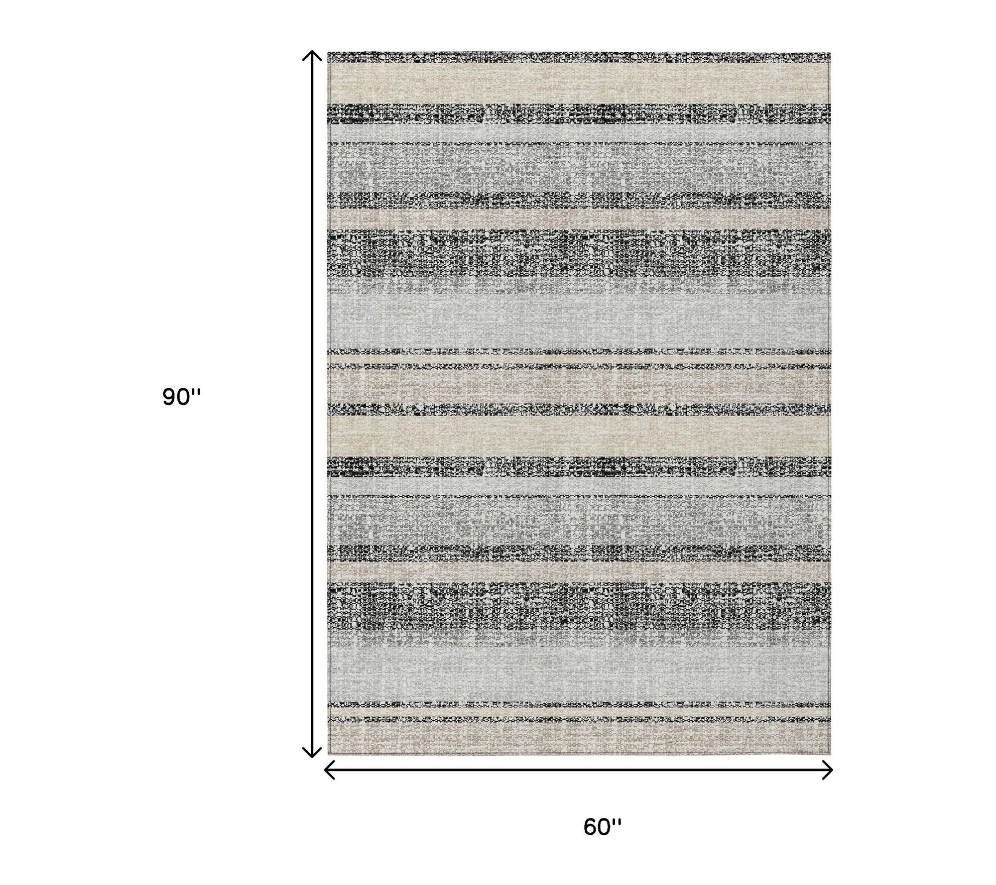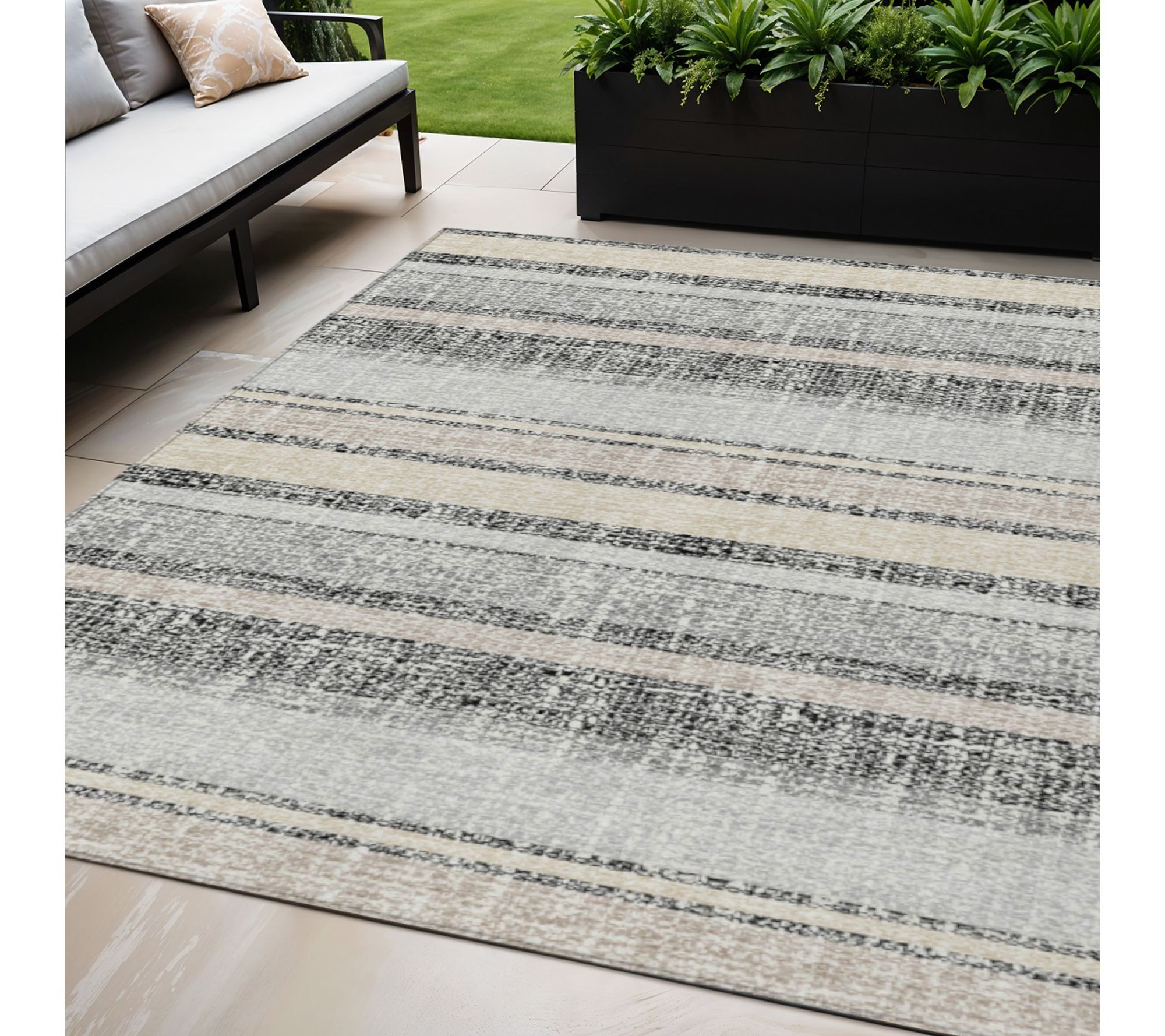 HomeRoots 5' X 8' Black Silver Striped WashableOutdoor Rug