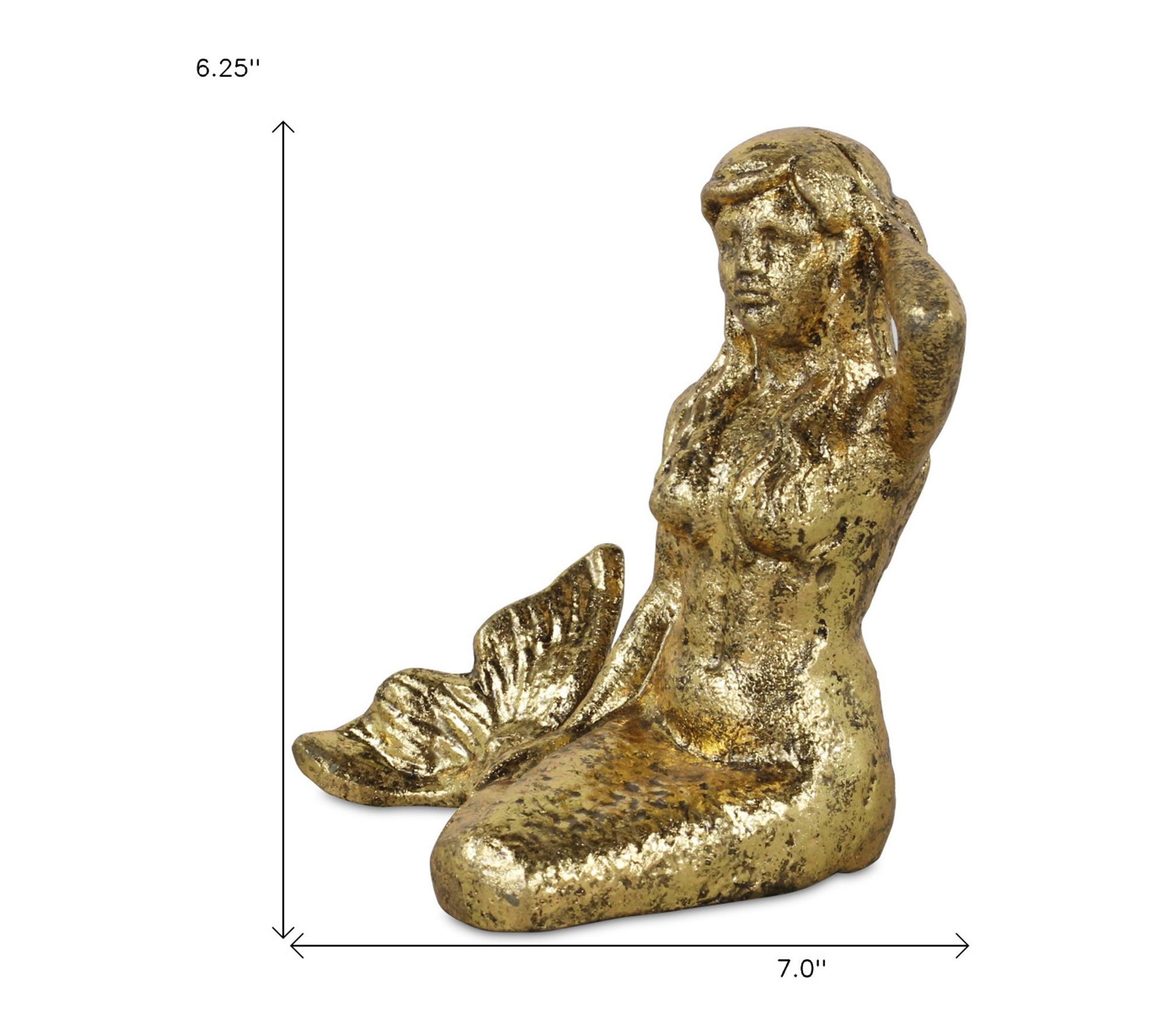 HomeRoots 6" Antiqued Brass Cast Iron Mermaid Statue