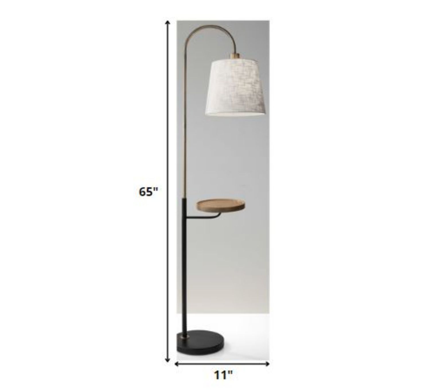 HomeRoots Black Metal Floor Lamp w/USB ChargingWood Shelf