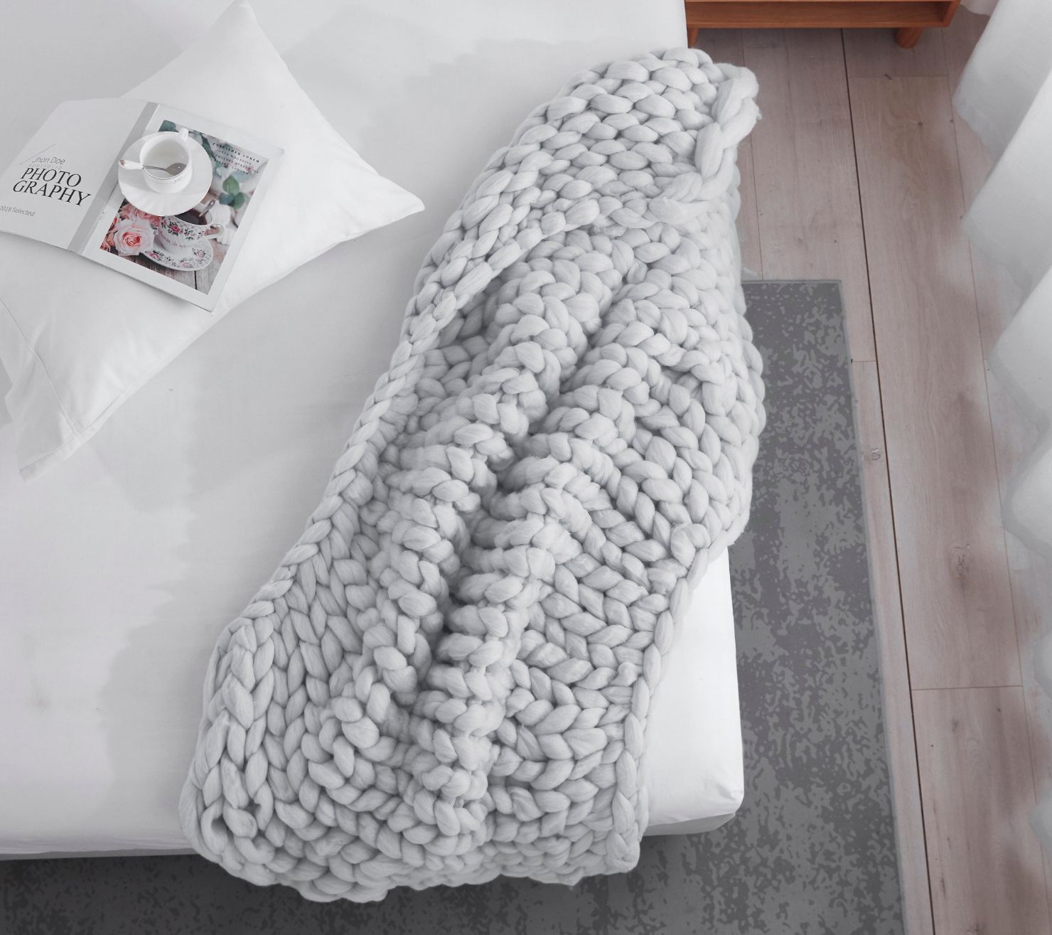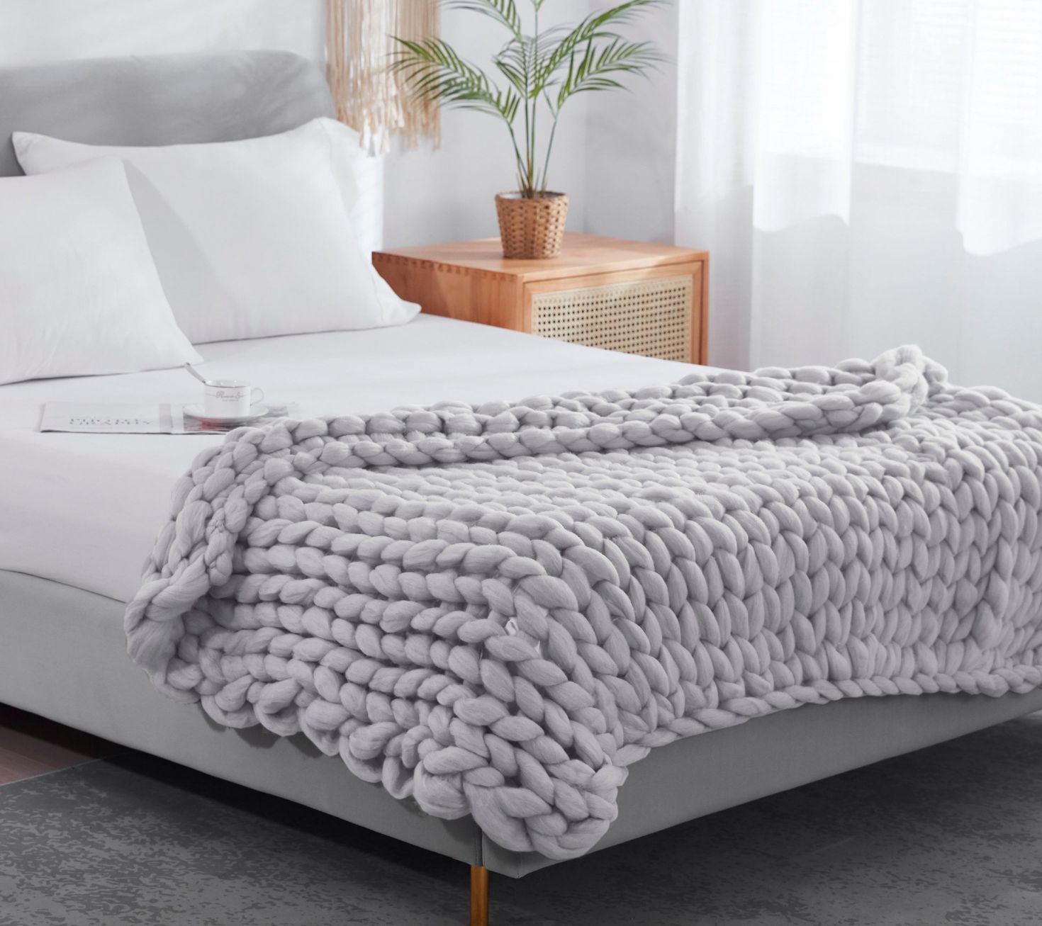 HomeRoots Boho Chunky Knit Throw Blanket