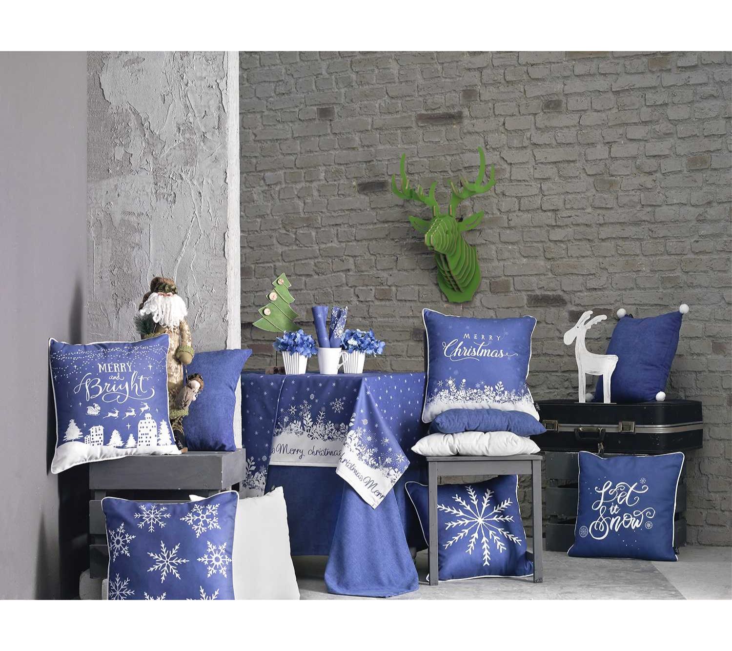 Instantly give your space that warm yuletide feel with this sophisticated blue and white "Merry Christmas" throw pillow cover. From HomeRoots.