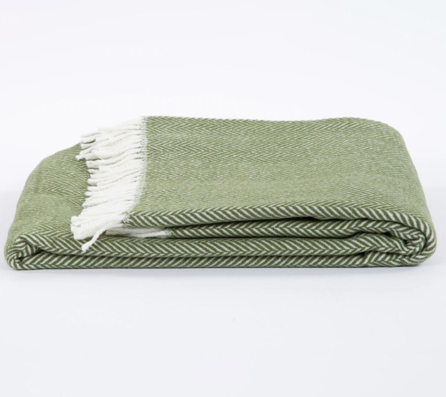 HomeRoots Moss Green & White Dreamy Soft Herringbone Blanket
