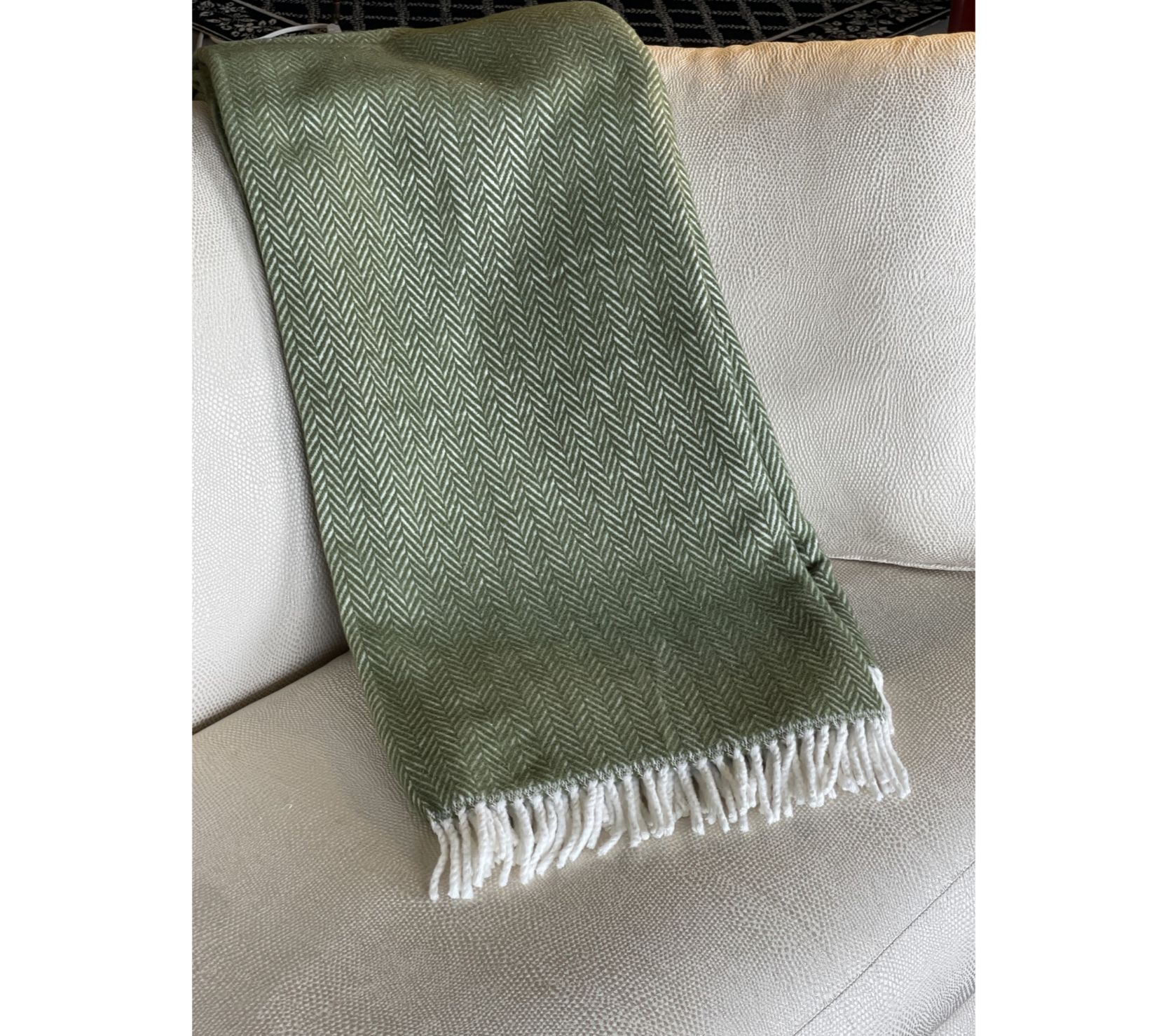 A soothing shade of green and a refined herringbone pattern make this blanket a charming accent for any room. Best of all, the woven softness will keep you warm and cozy. From HomeRoots.