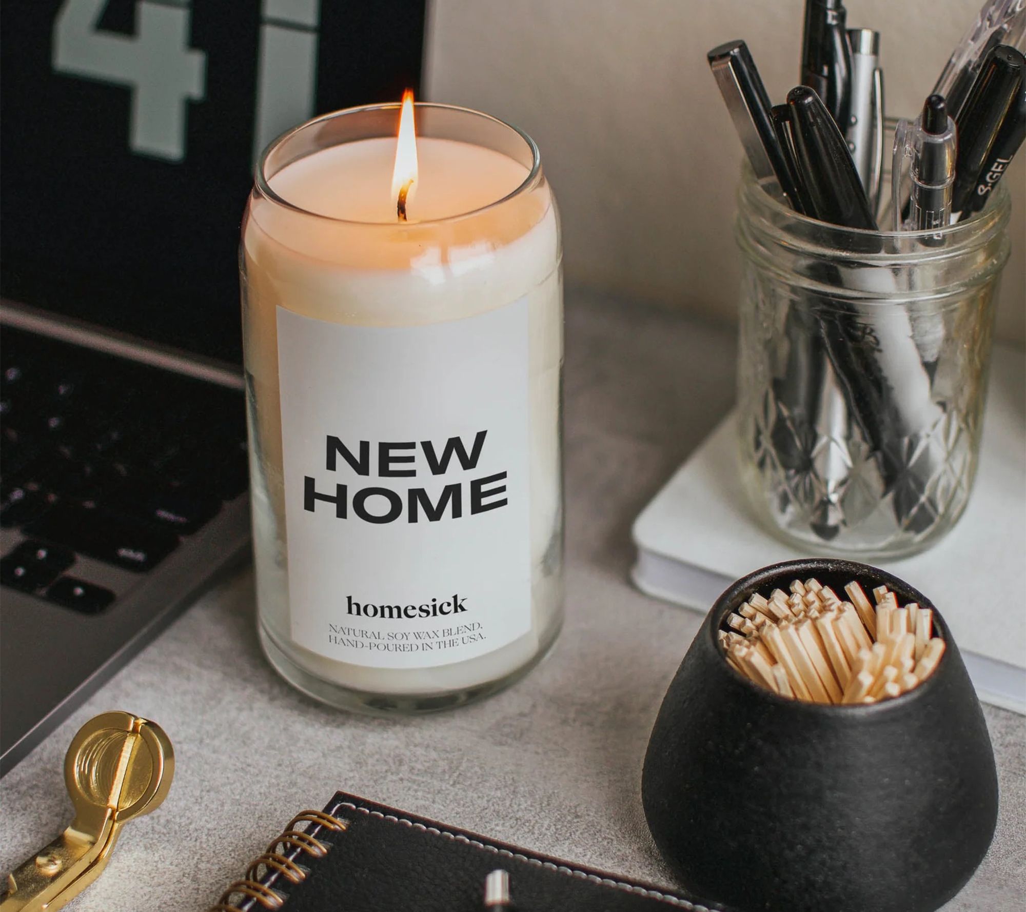 Settle into your new space with the warm glow and inviting aroma of this New Home candle. Its soothing notes of jasmine, cedarwood, and lime bring comforting ambiance to any corner, instantly making every room feel lived in and loved. Surprise a friend on moving day or treat yourself to a little housewarming bliss. From Homesick.