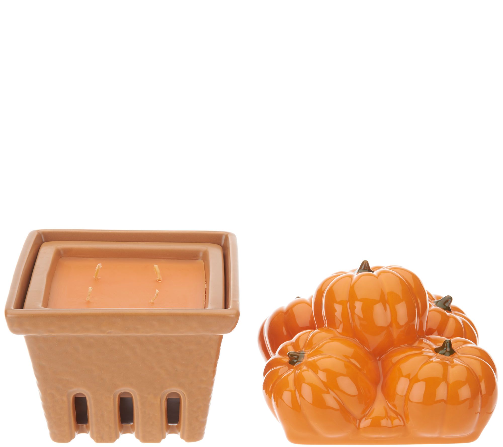 HomeWorx by Harry Slatkin Ceramic Pumpkin Basket with (2) 9-oz Candles