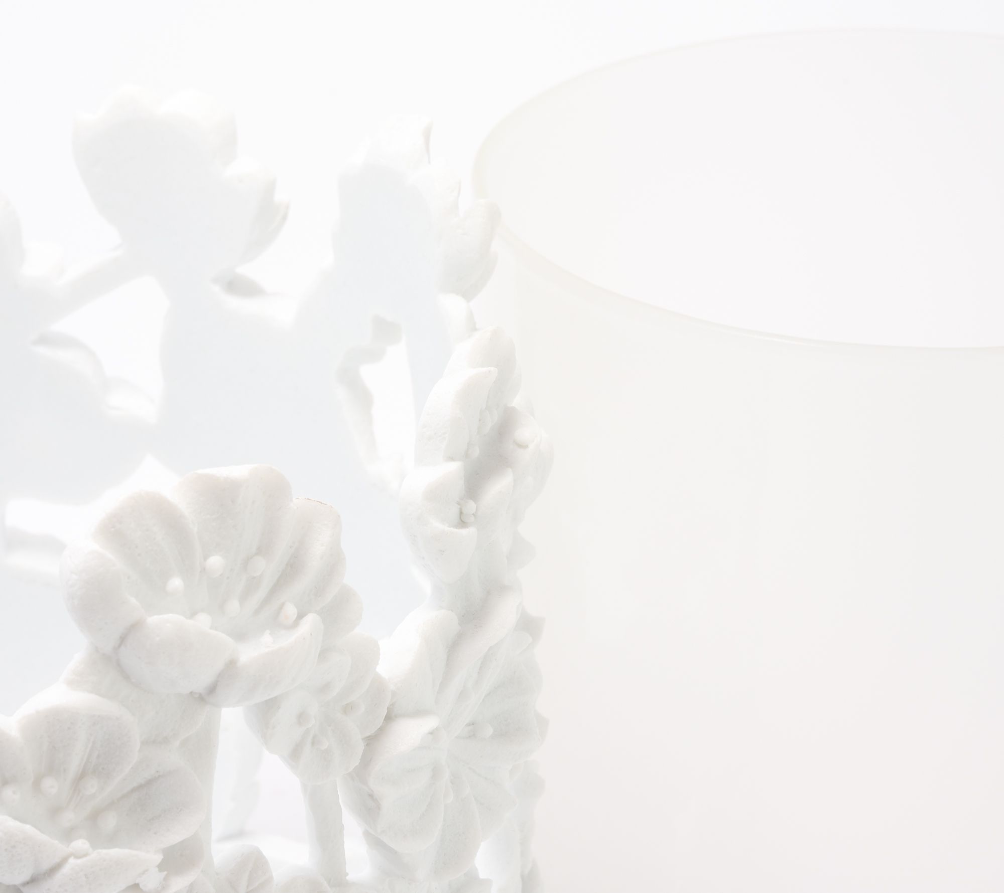 • Distressed white resin holder with intricate floral motif