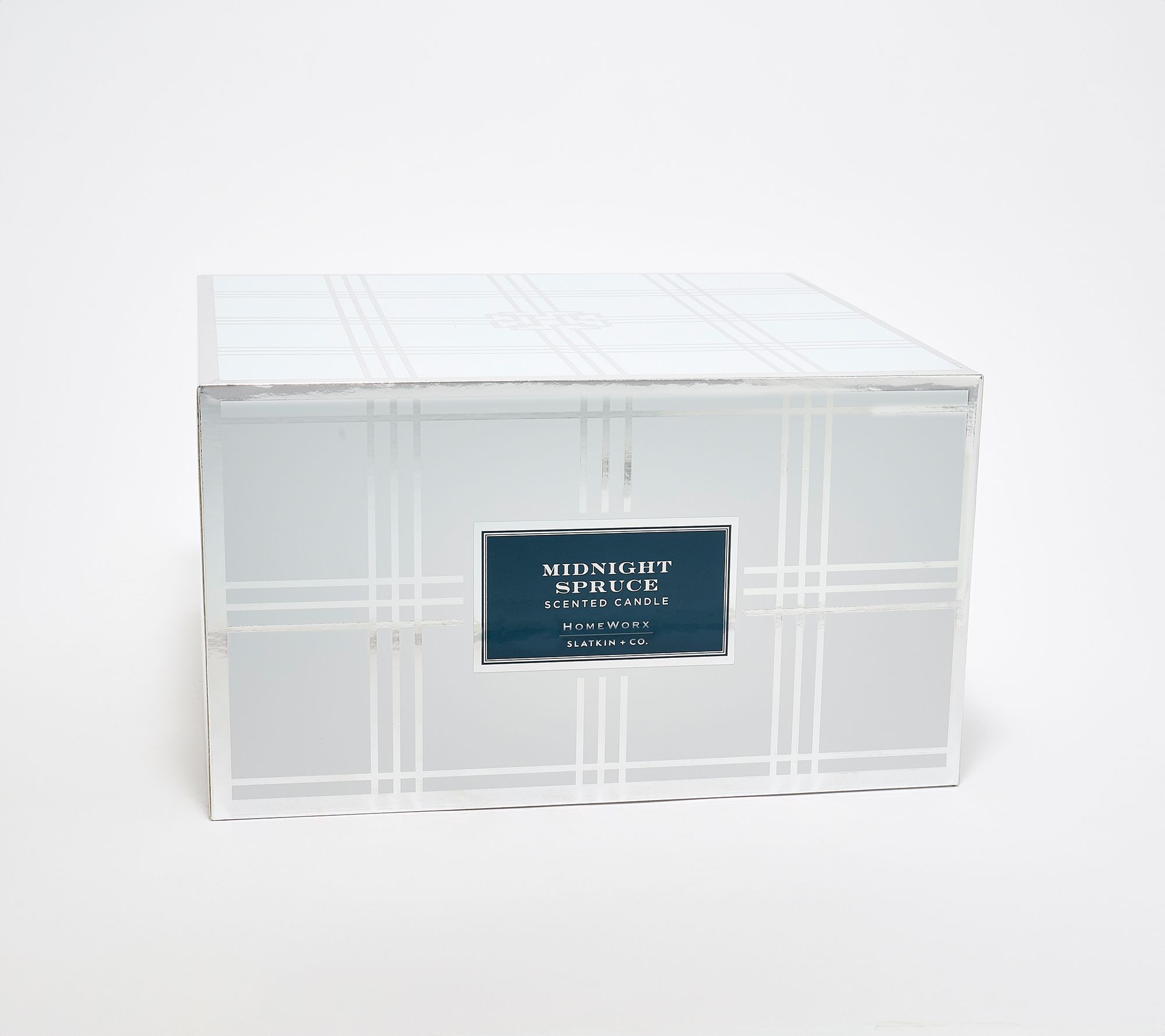 Includes 50-oz luxe wax candle in Midnight Spruce scent and gift box