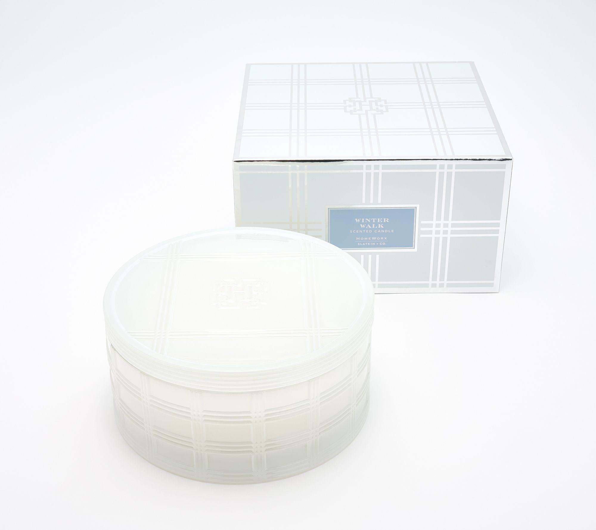 Includes 50-oz luxe wax candle in Winter Walk scent and gift box