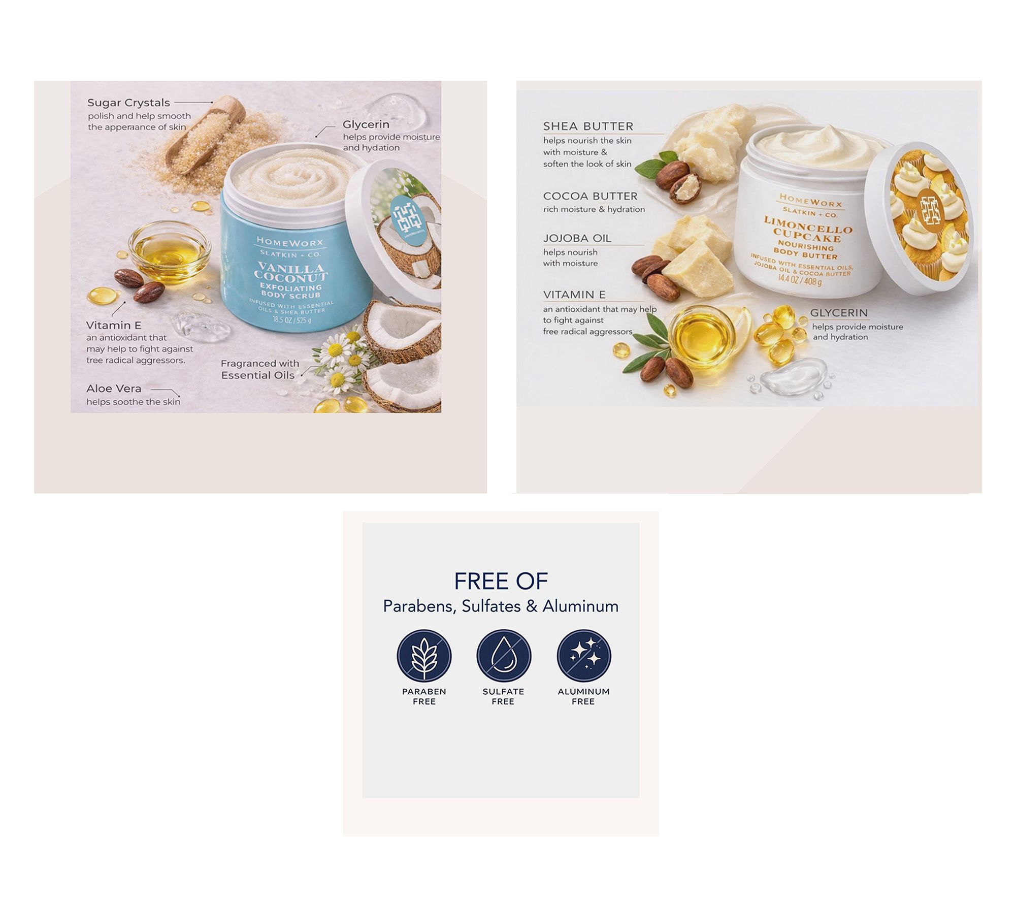 Now, layer on the body butter! You'll love the smooth look and lavish feel, thanks to shea butter, jojoba oil, and cocoa butter, which have been shown to help nourish the skin with moisture and help diminish the appearance of fine lines and wrinkles.