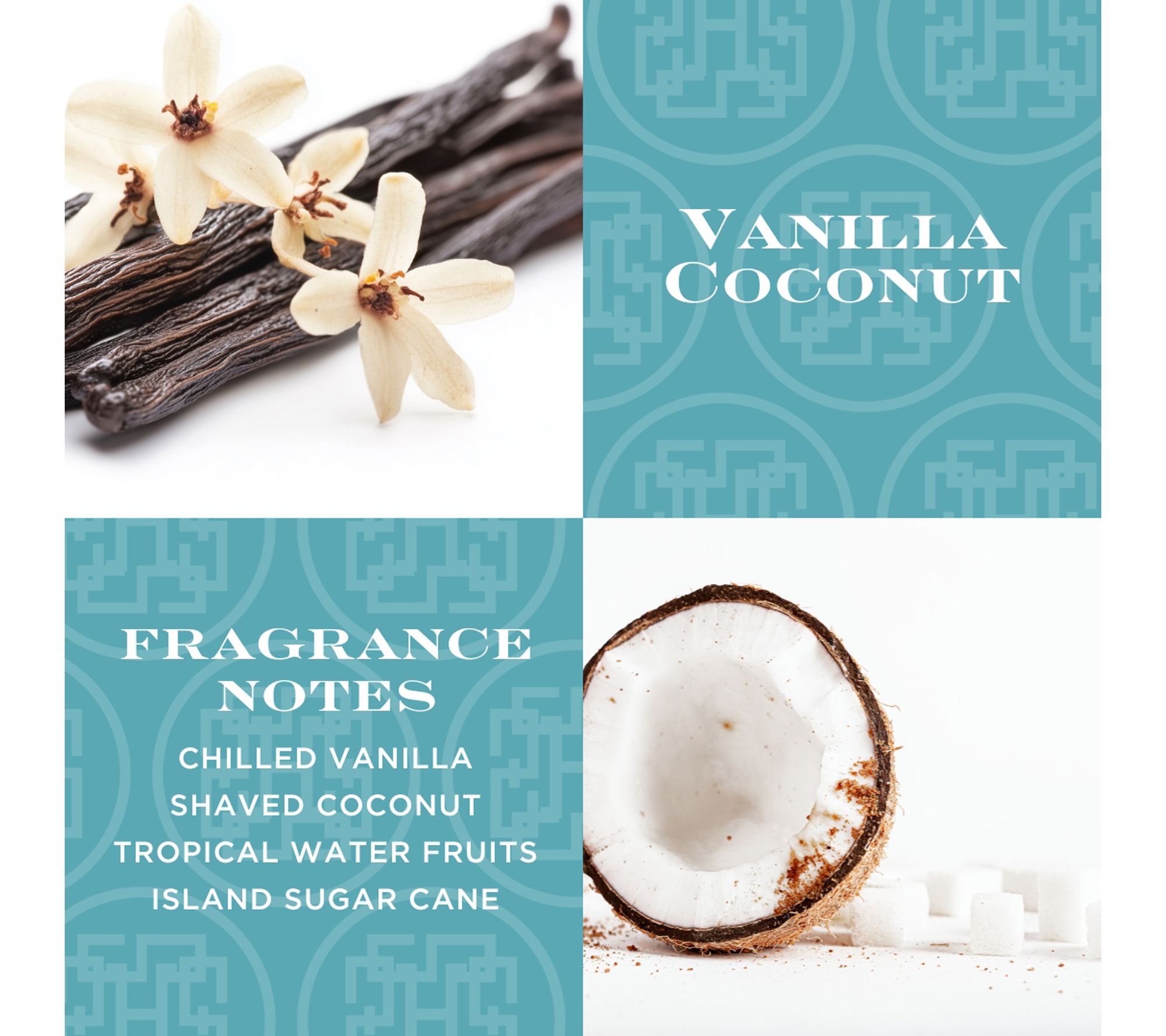 Vanilla Coconut: creamy vanilla beans swirled into tropical coconut and island sugar cane, and served under swaying palm fronds