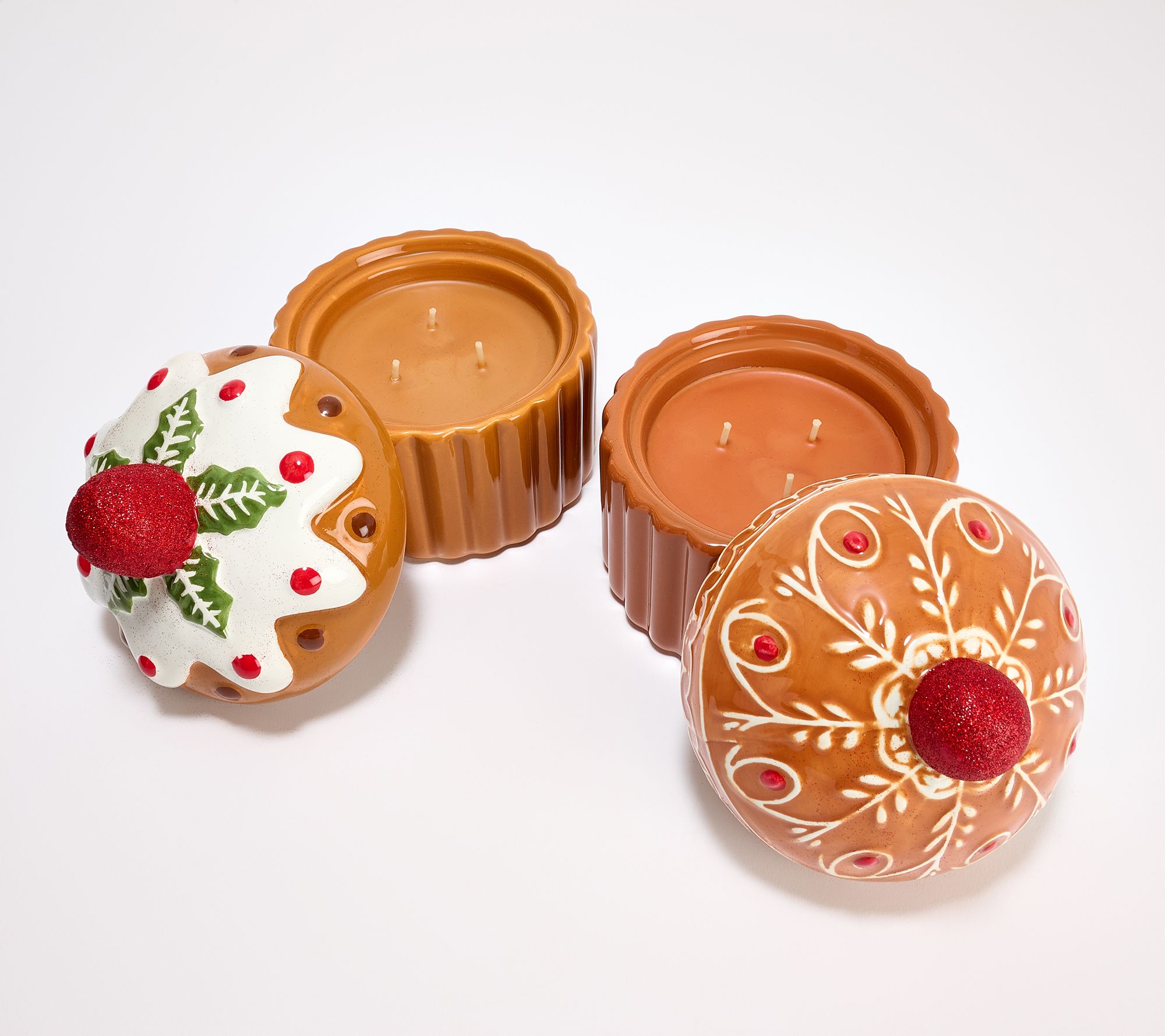 Includes 6-oz Grandma's Gingerbread ceramic candle and 6-oz Chocolate Chip Cookies ceramic candle