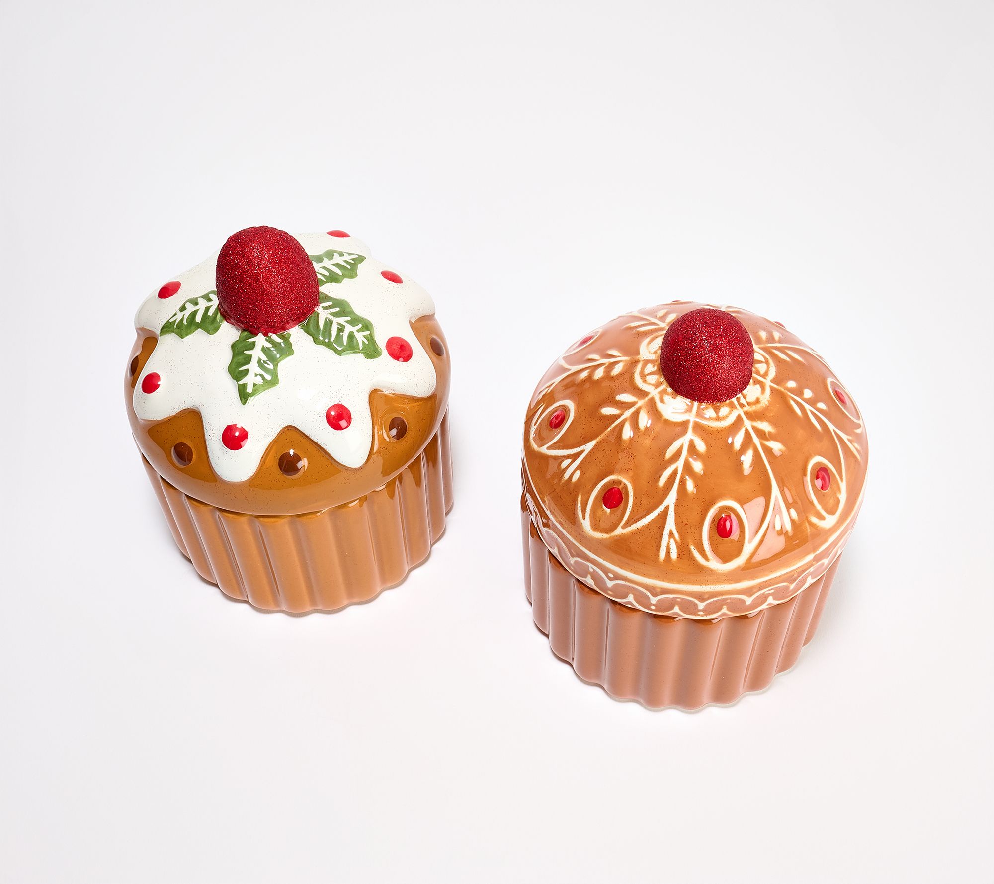 Holiday gatherings feel even more welcoming with this duo of ceramic cookie candles. Decorated with festive scalloped bases and charming lids, each candle brings comforting aromas of spiced gingerbread or delicious chocolate chip cookies to your space, turning any evening into a sweet celebration. From HomeWorx by Slatkin + Co.