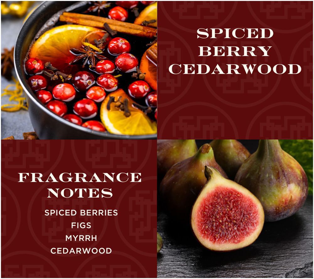 Spiced Berry Cedarwood: notes of spiced berries, figs, myrrh, and cedarwood