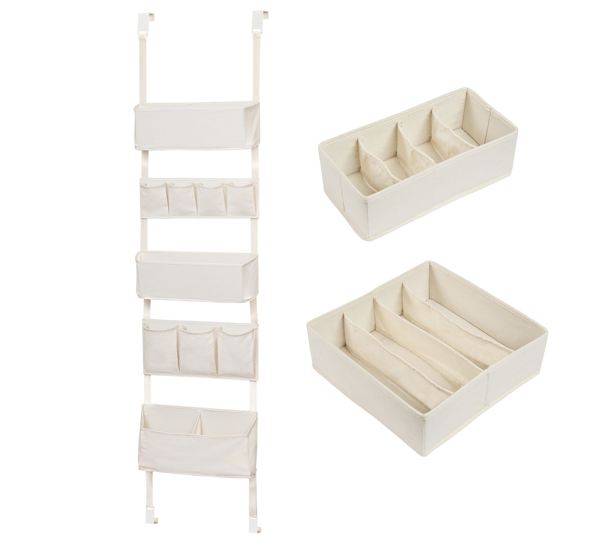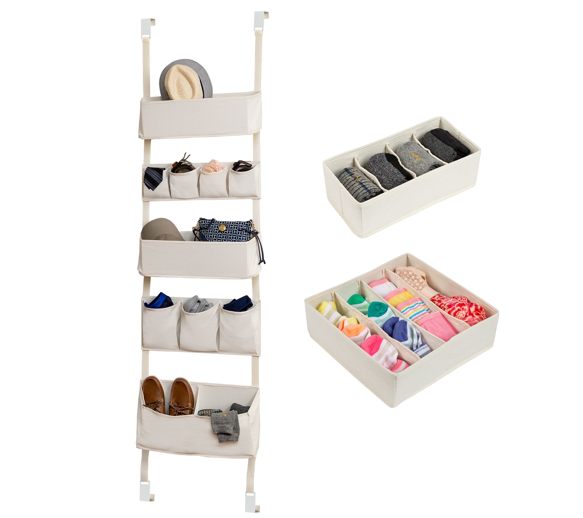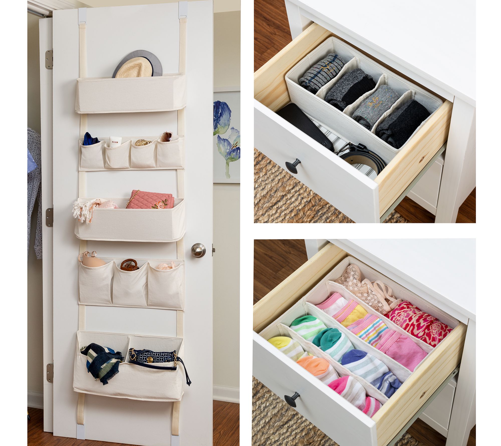 • Includes over-the-door hanging organizer, small drawer organizer, and large drawer organizer