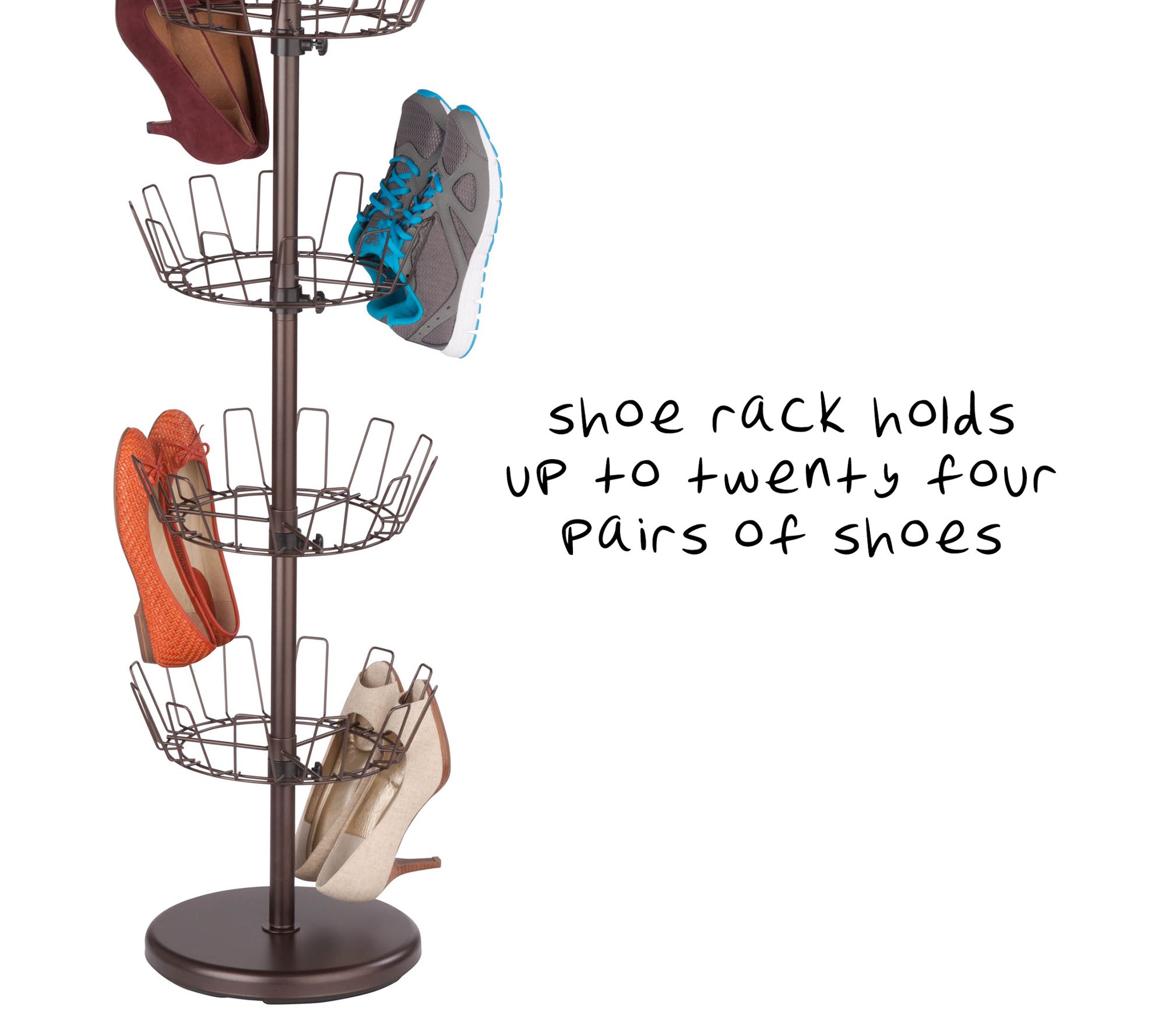 Conquer the clutter of shoes in your bedroom, entryway, or closet with the help of this four-tier revolving shoe tree. From Honey-Can-Do.