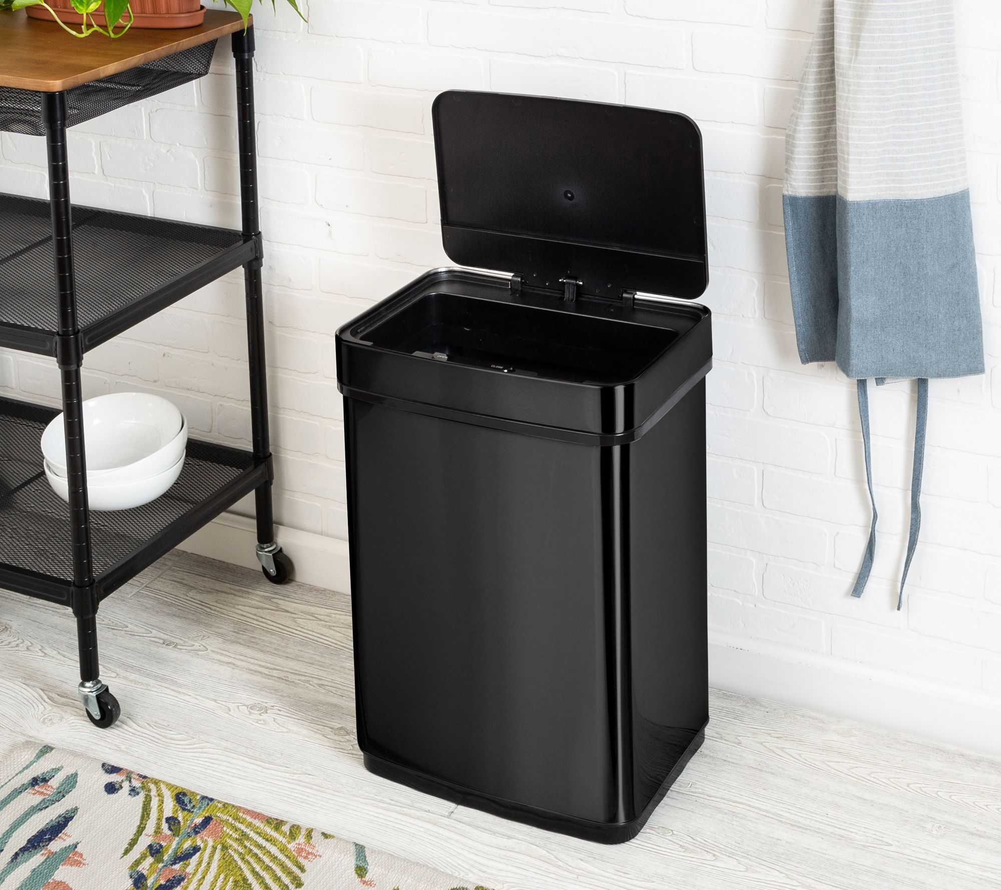 A motion sensor makes this trash can a breeze to use. Just wave your hand above the sensor to open the lid that closes softly on its own within five seconds to prevent loud slams and subdue stinky smells. A sleek black finish ensures that it's as attractive as it is functional. From Honey-Can-Do.