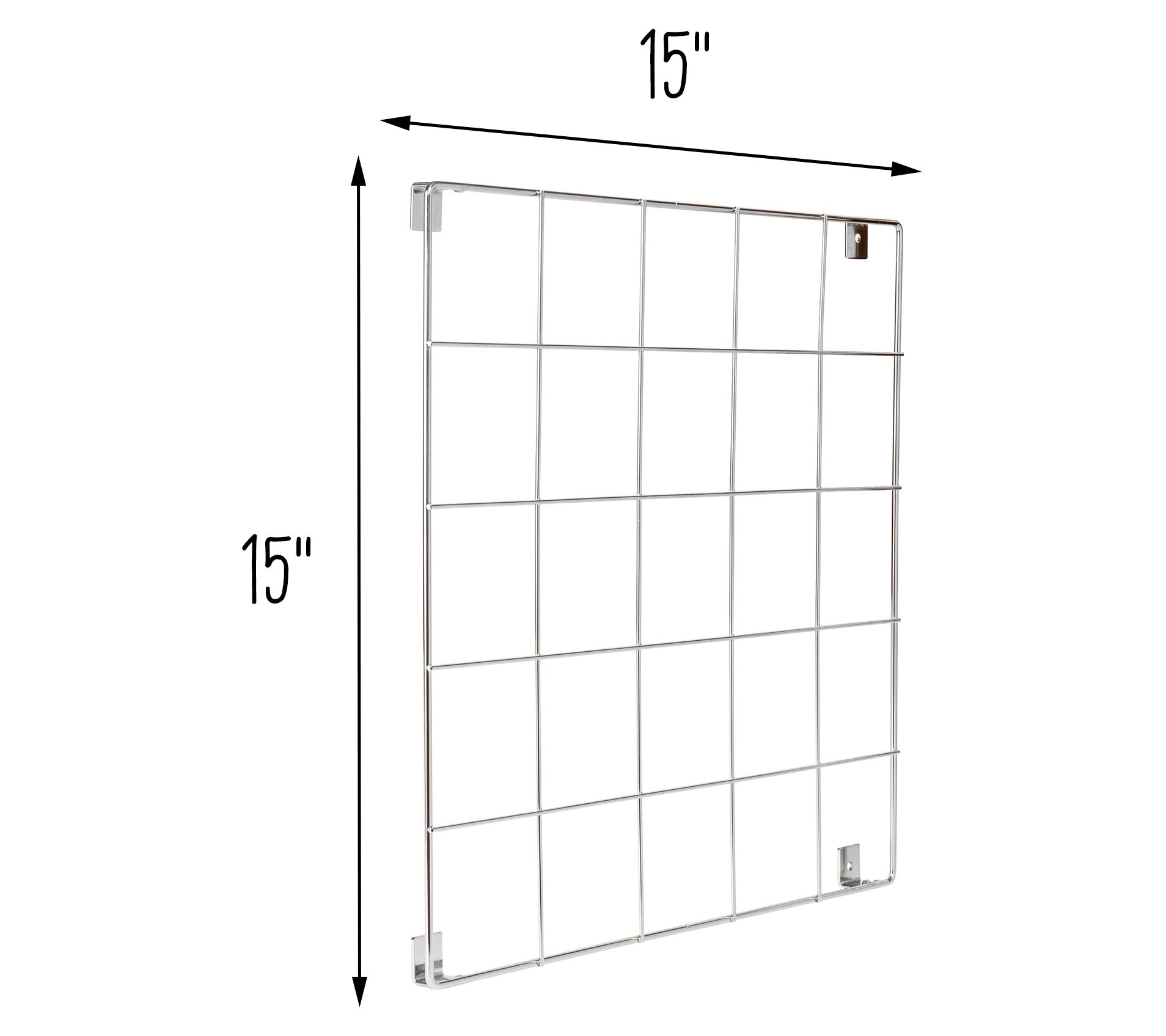 • Measurements: Grid 1"L x 15"W x 15"H; Basket 5"L x 8"W x 3H; Shelf 4"L x 6"W x 3"H; Hook rack 2"L x 12"W x 4.5"H