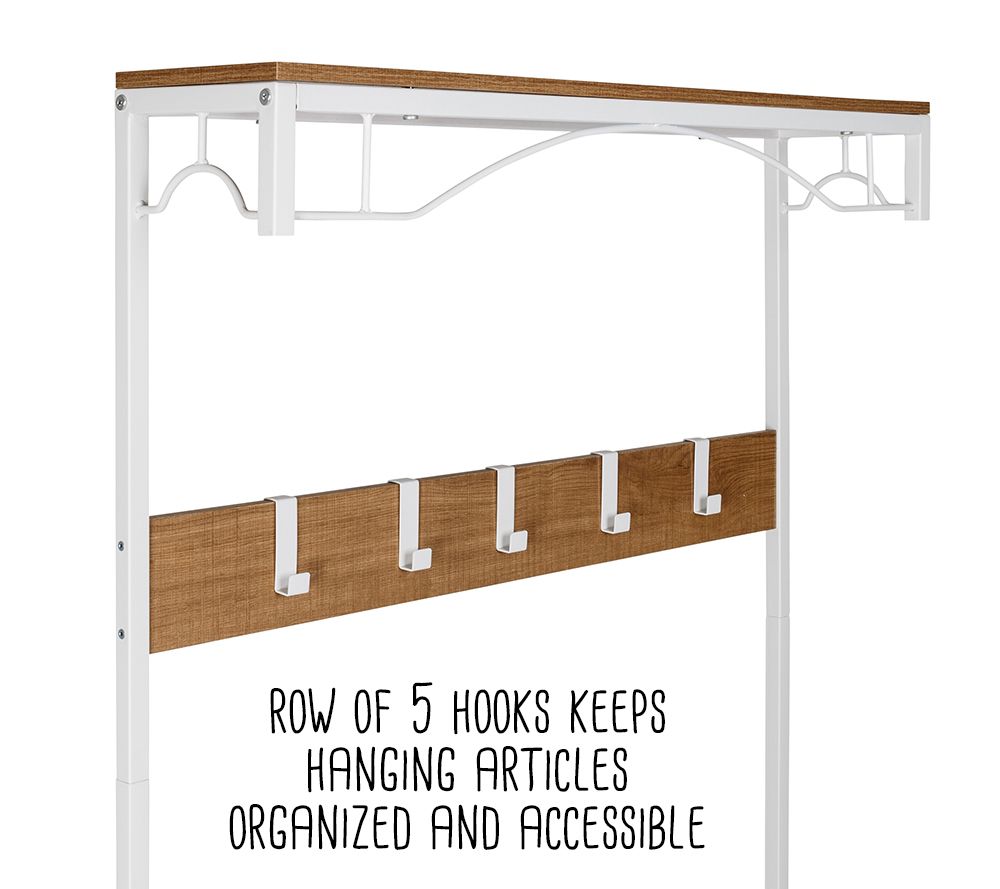 Add functionality to your entryway, living room, or mudroom with this sleek coat rack. Designed with coat hooks and a built-in shoe rack for additional storage, the top shelf can easily accommodate your everyday handbags or storage bin. From Honey-Can-Do.