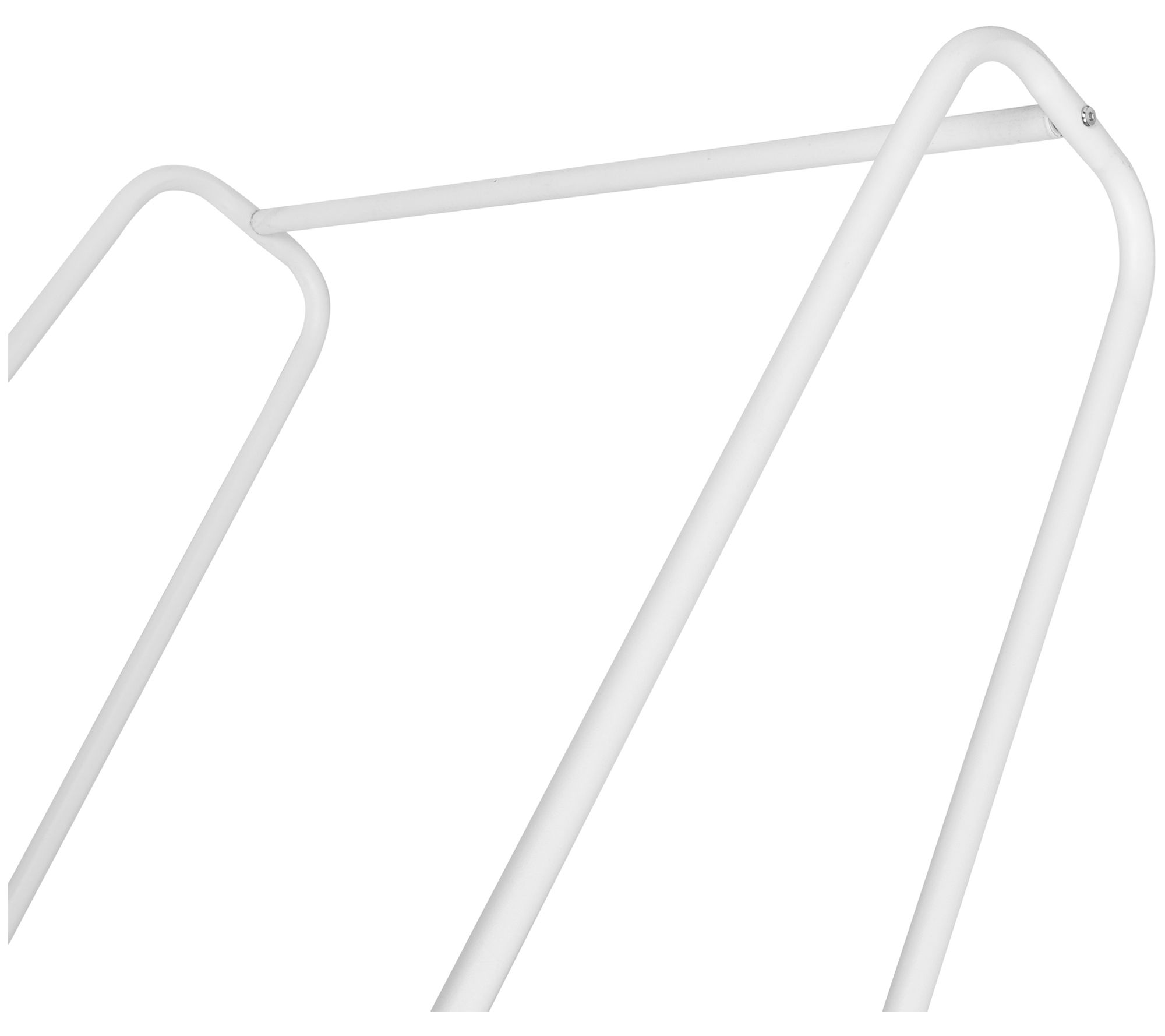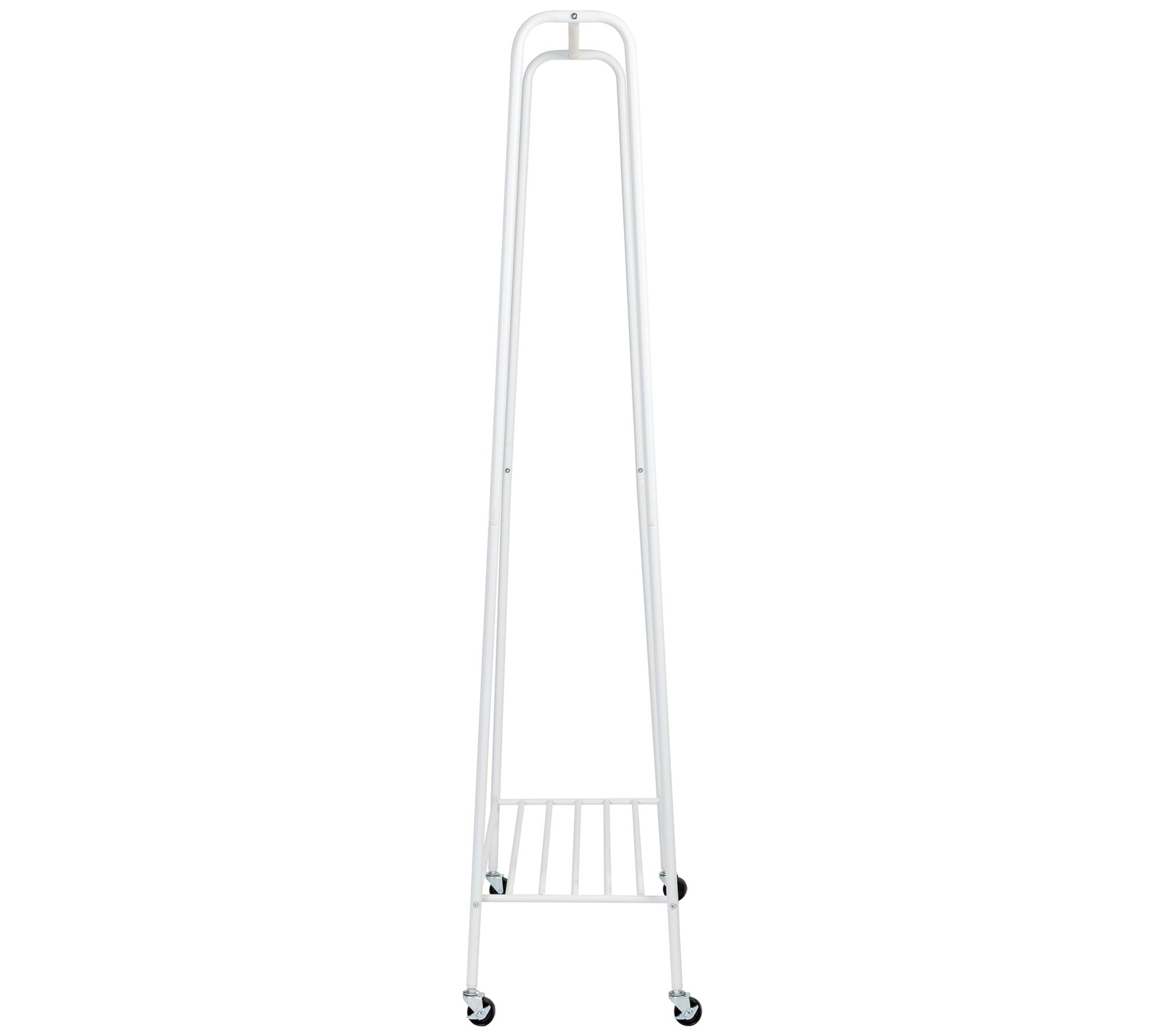 Versatile and mobile, this sturdy rolling garment rack makes it easy to view, arrange and switch out clothes, creating convenient closet space wherever you need it. The bottom shelf holds four to six pairs of shoes or bags, and the white matte finish lends a casual, yet sophisticated look. From Honey-Can-Do.