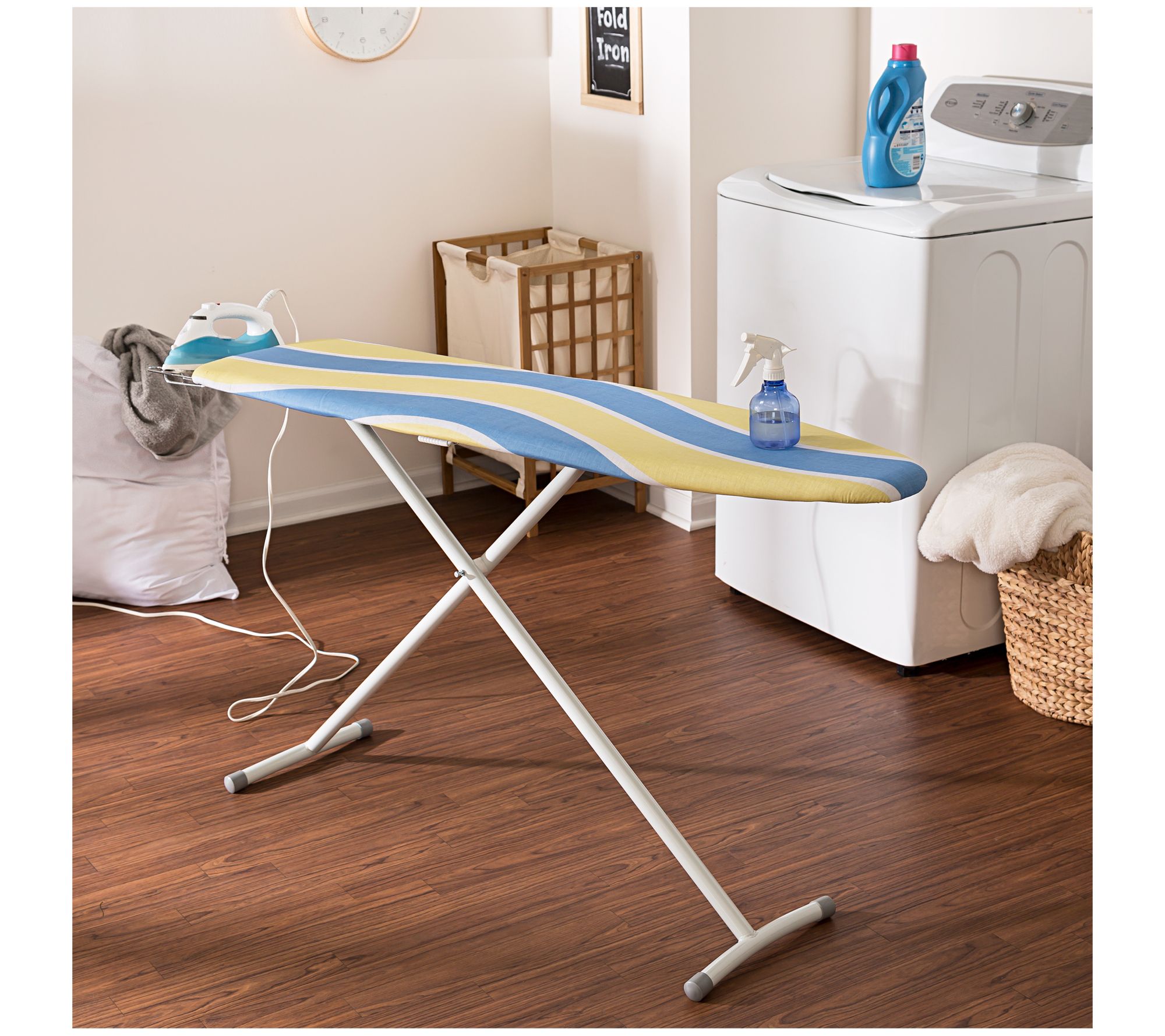 Classic styling and modern convenience combine in this deluxe ironing board. An integrated, retractable iron rest is the perfect spot to rest a warm iron. Plus, the 100% cotton cover includes a 7mm thick foam pad for a smooth ironing surface every time. From Honey-Can-Do.
