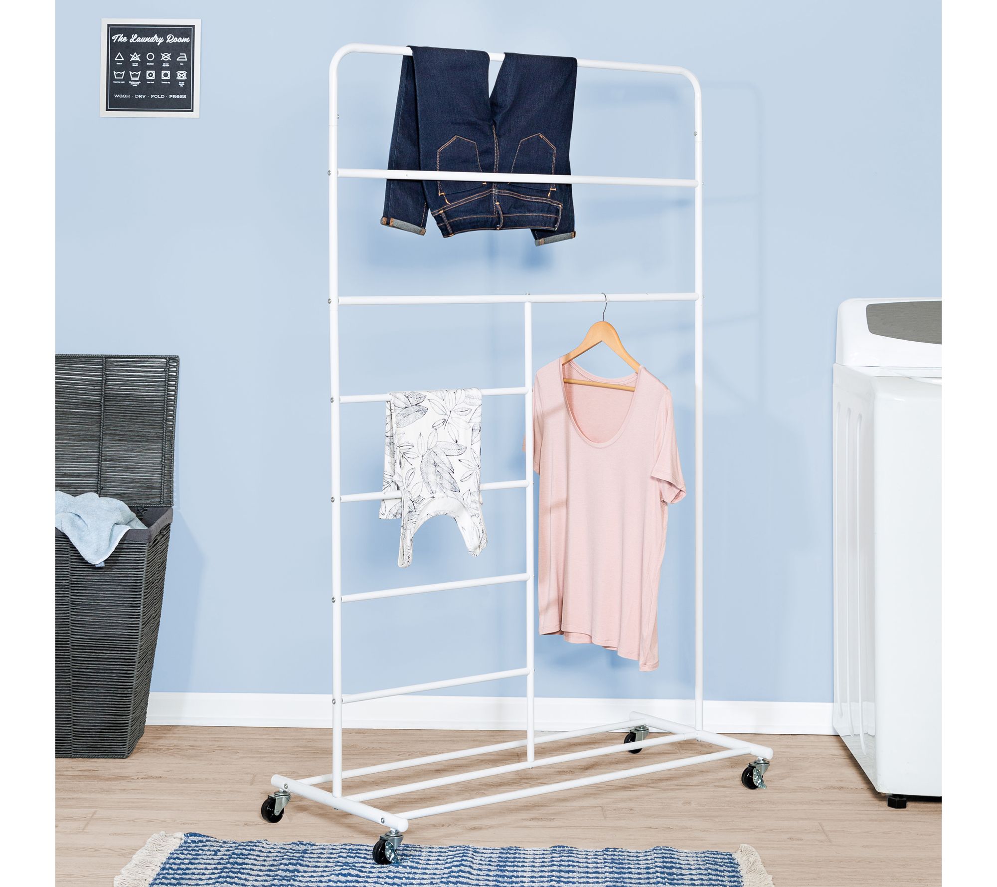 Durable and functional, this laundry drying rack on wheels packs a lot of drying space and rolls where you need it. From Honey-Can-Do.