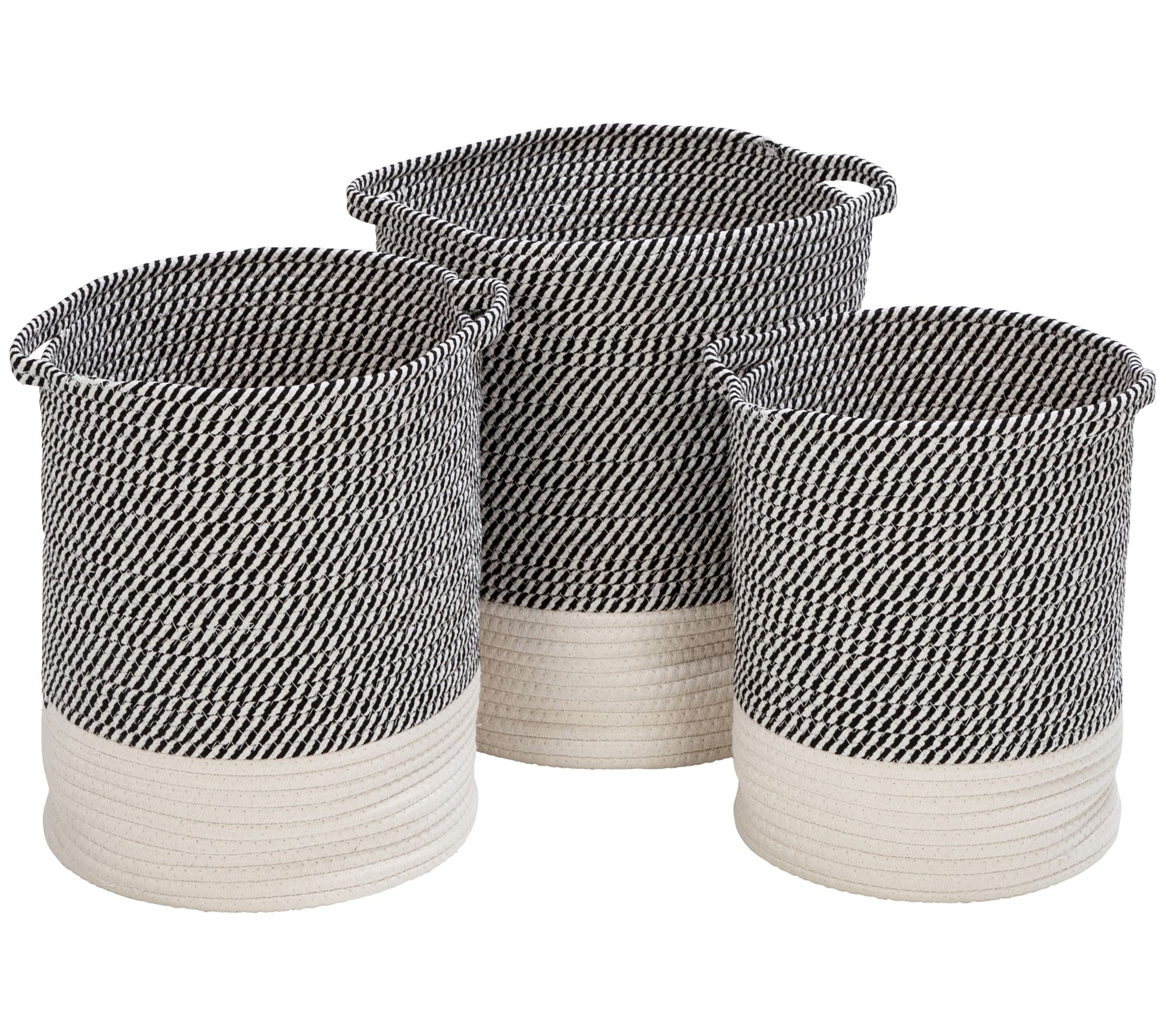 • Includes large, medium, and small woven cotton rope baskets