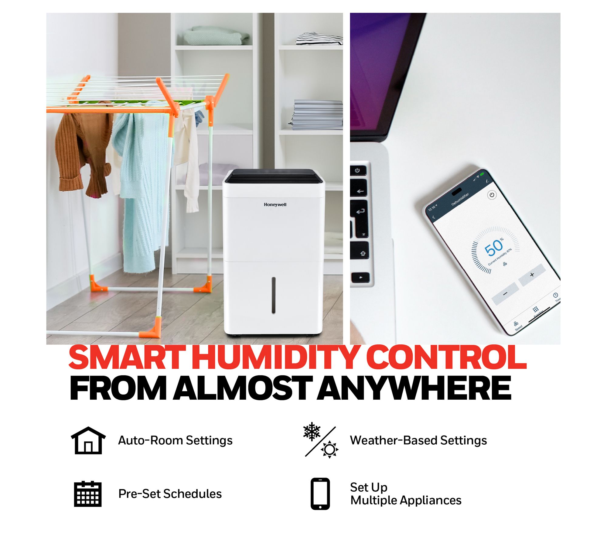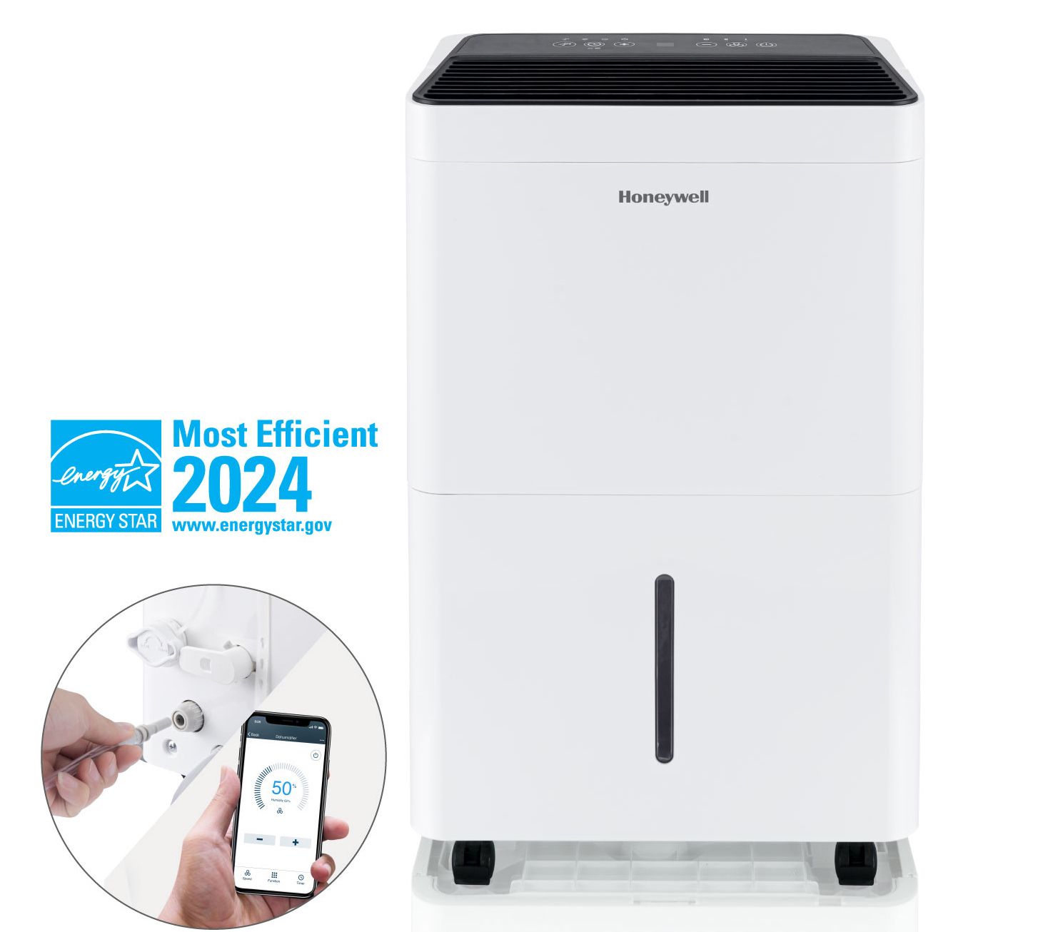 Managing indoor humidity has never been easier. This smart, Wi-Fi-enabled dehumidifier from Honeywell is ideal for large rooms, quickly drawing excess moisture from the air to create a more comfortable living space. Its pump feature allows for continuous drainage, making it perfect for busy lifestyles. With features like a 24-hour timer, auto shutoff, and compatibility with Amazon Alexa and Google Home, it's designed to blend seamlessly into your routine. From Honeywell.