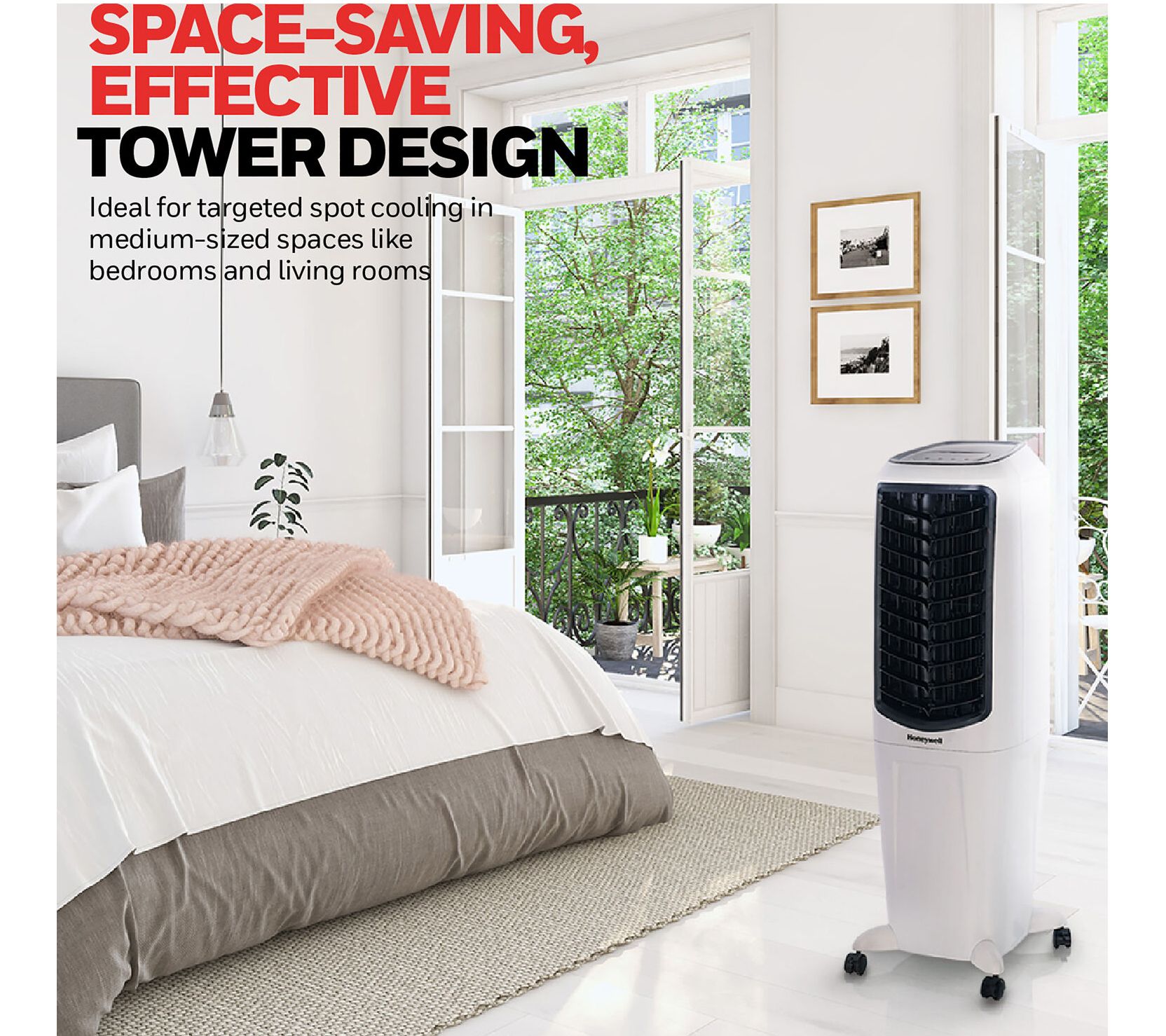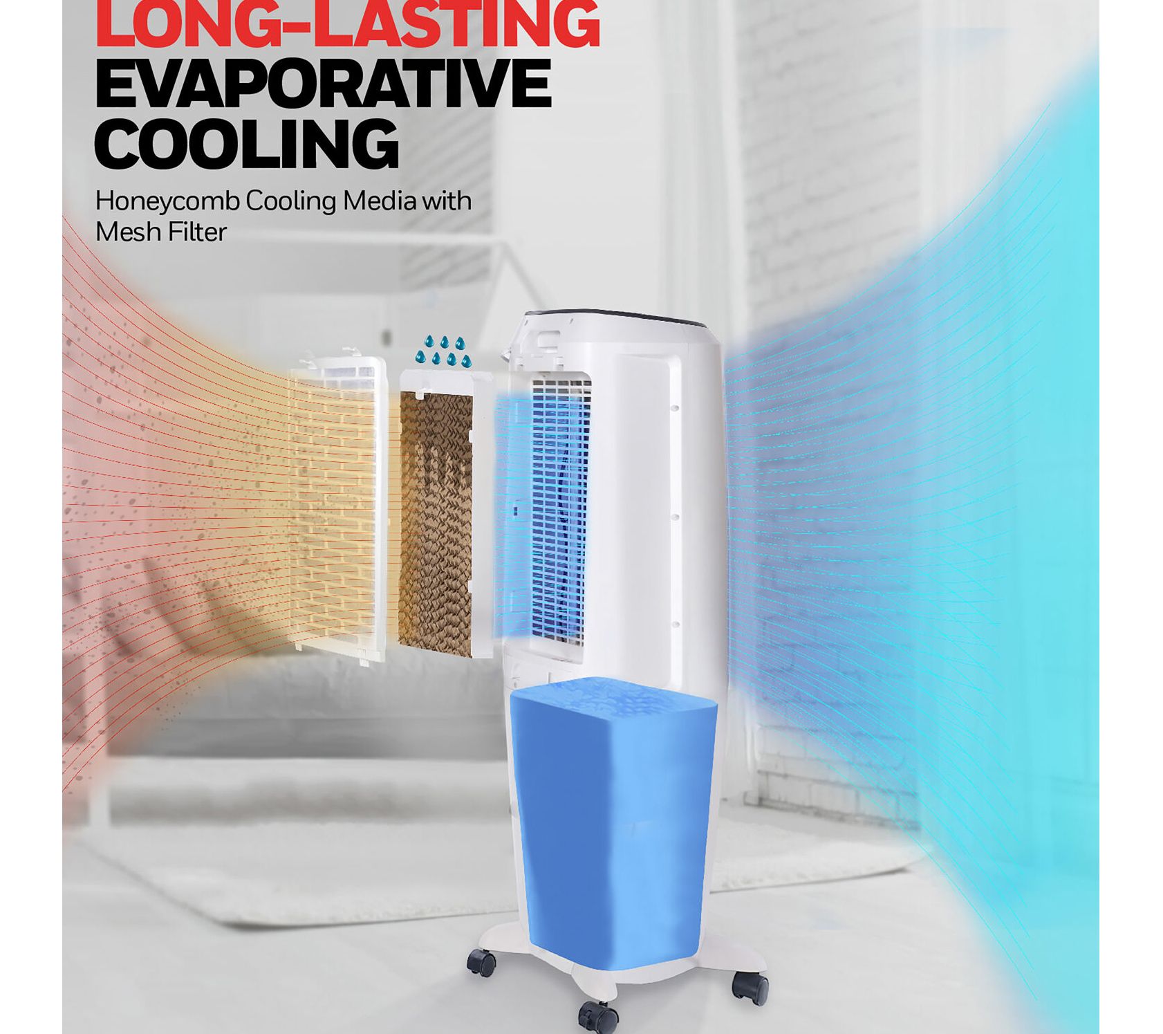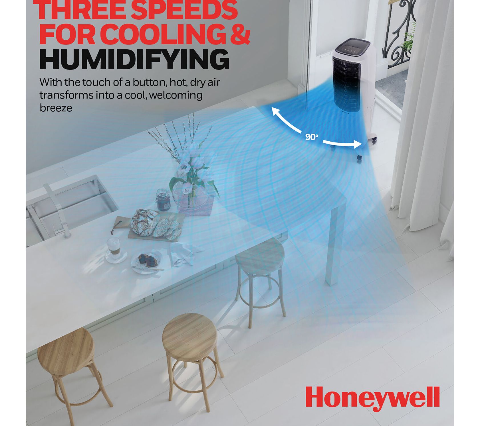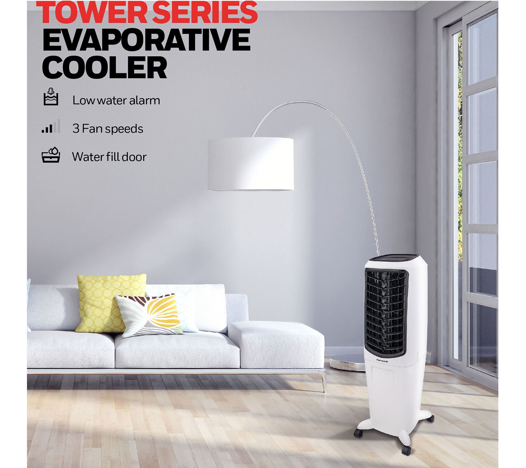When the air is hot and the humidity is low, this indoor evaporative air cooler springs into action. The oscillating louvers evenly distribute cool, filtered air through the honeycomb design, while a full function remote control puts you in command wherever you are. From Honeywell.