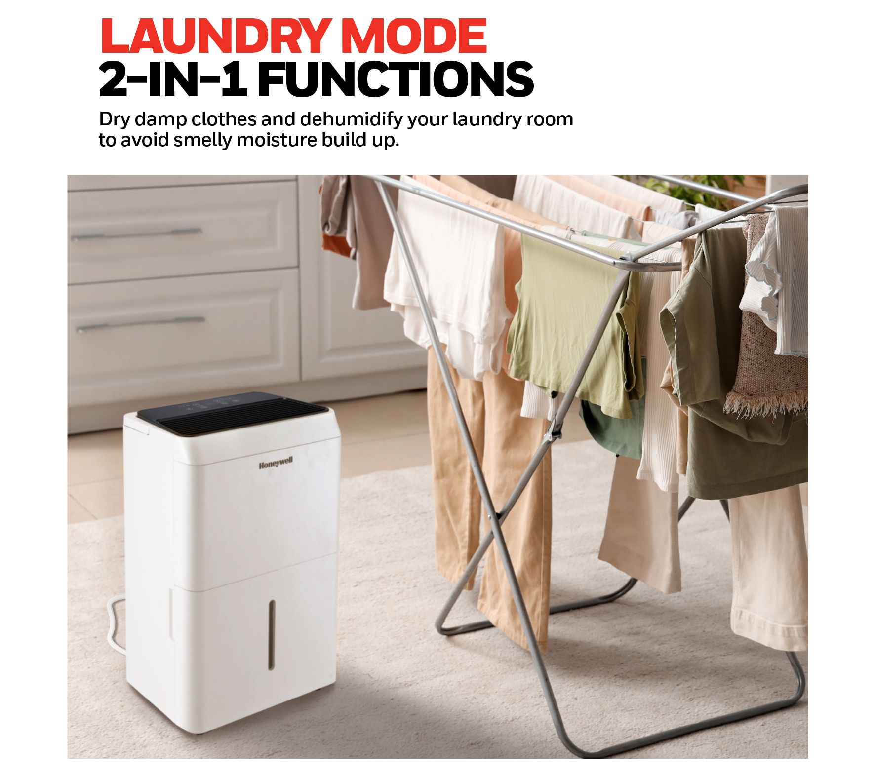 Maintaining a comfortable home environment just got easier. Envision effortlessly managing excess moisture in your living spaces with this efficient device, ideal for basements, crawl-spaces, or any moisture-prone area. Offering W-iFi connectivity and hands-free voice control through Amazon Alexa or Google Home, this dehumidifier makes home comfort convenient and easy. From Honeywell.