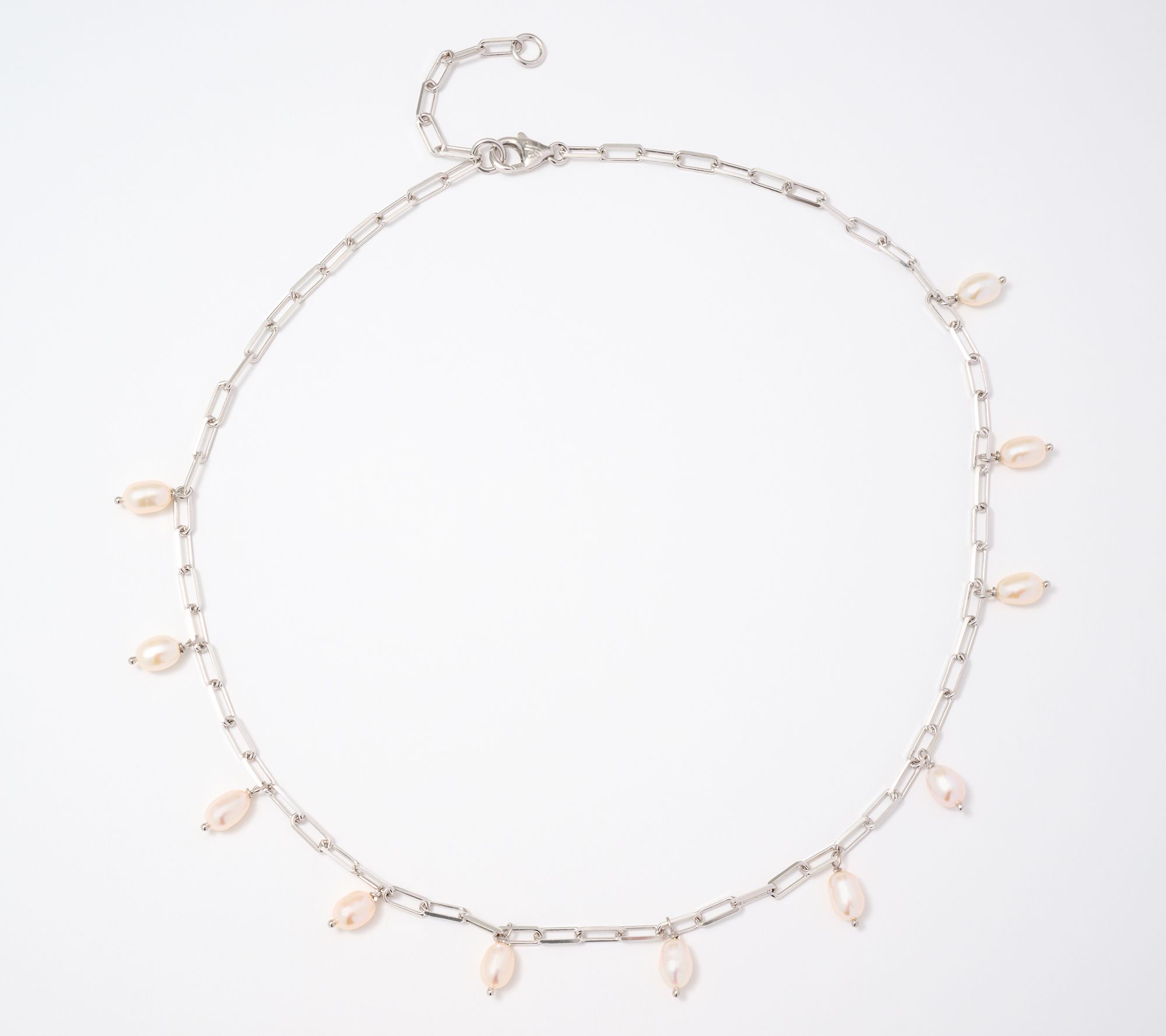 Honora Cultured Pearl 20" Paperclip Necklace with Pearl Drops, SS