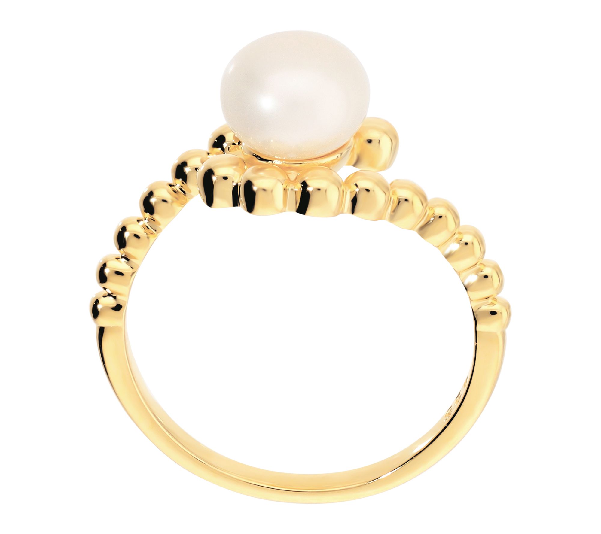 A sweep of sophistication graces your hand with this bypass ring, where a luminous cultured freshwater pearl is artfully cradled between polished arms. Whether worn with everyday favorites or to accent a special-occasion look, its elegant design and Italian craftsmanship lend an effortless touch of refinement. From Honora.