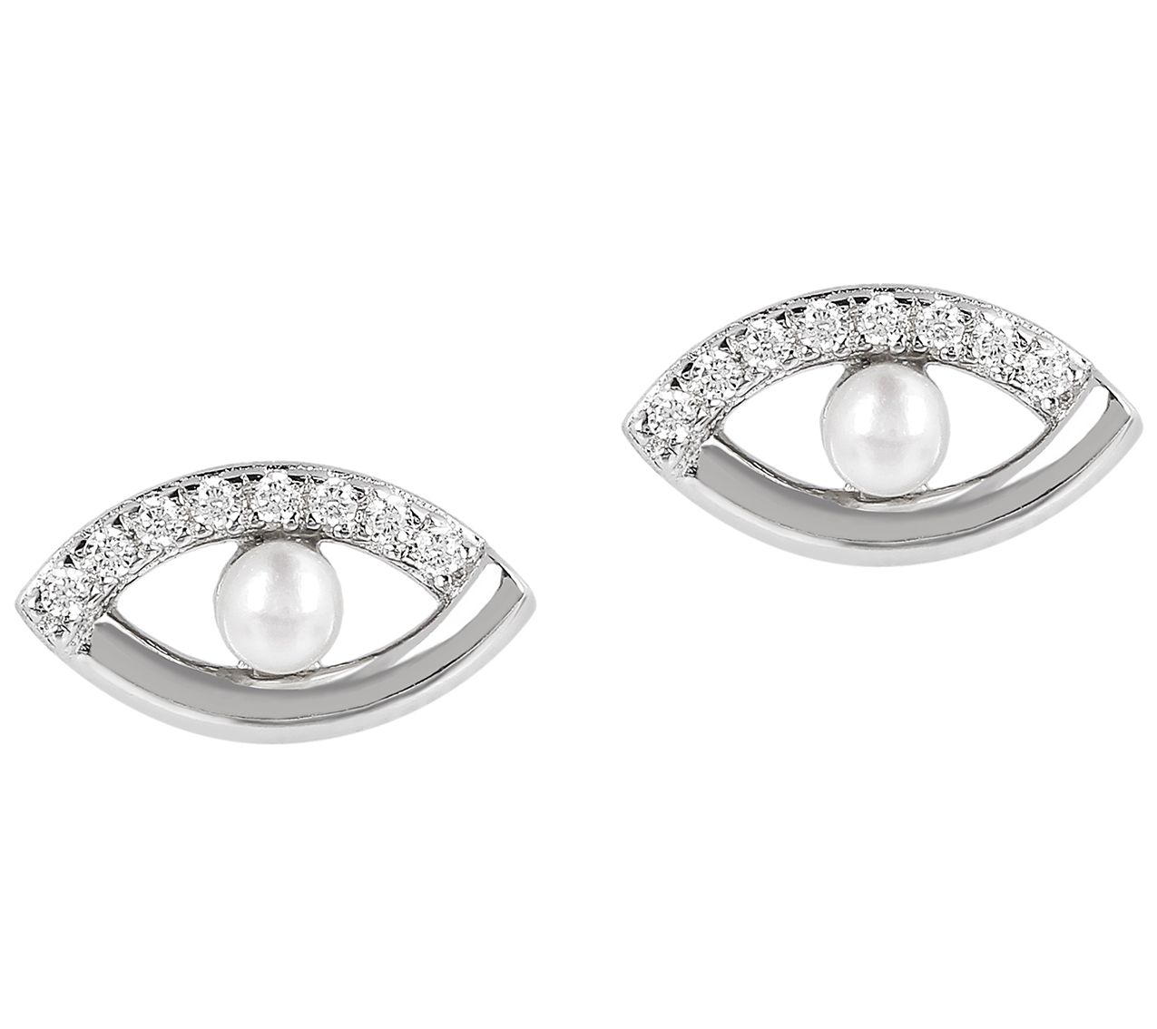 Don't look away. These petite evil eye earrings grab attention with glitz and a glossy cultured freshwater pearl. From Honora.