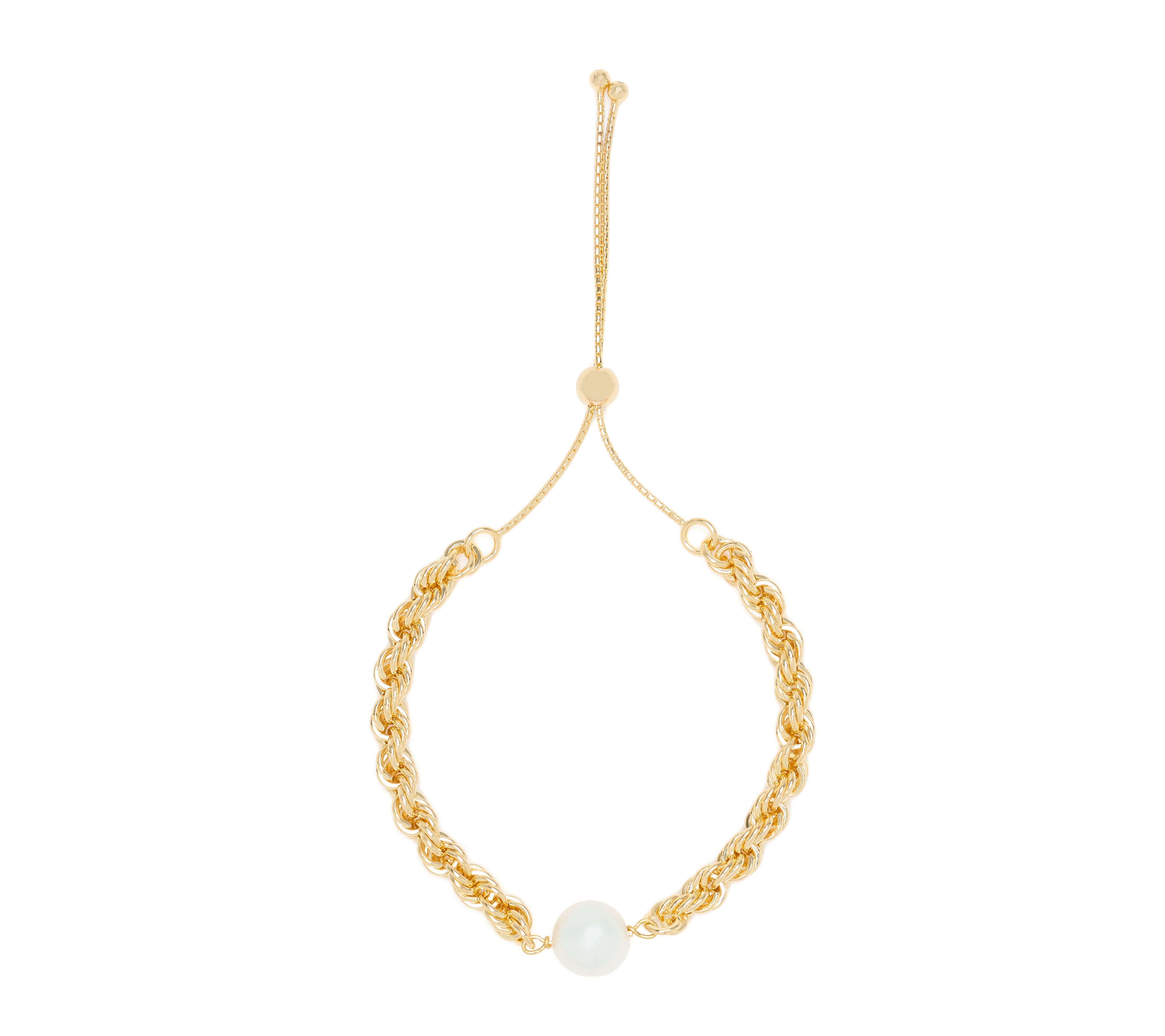 A single luminous Ming cultured freshwater pearl sits at the center of a sleek rope chain, creating a bracelet that adds sophistication whether you're dressing up denim or finishing a refined evening outfit. Its slide-adjustable bead closure lets you customize the fit for comfort, while polished bead accents bring a modern touch to your wrist stack. From Honora.