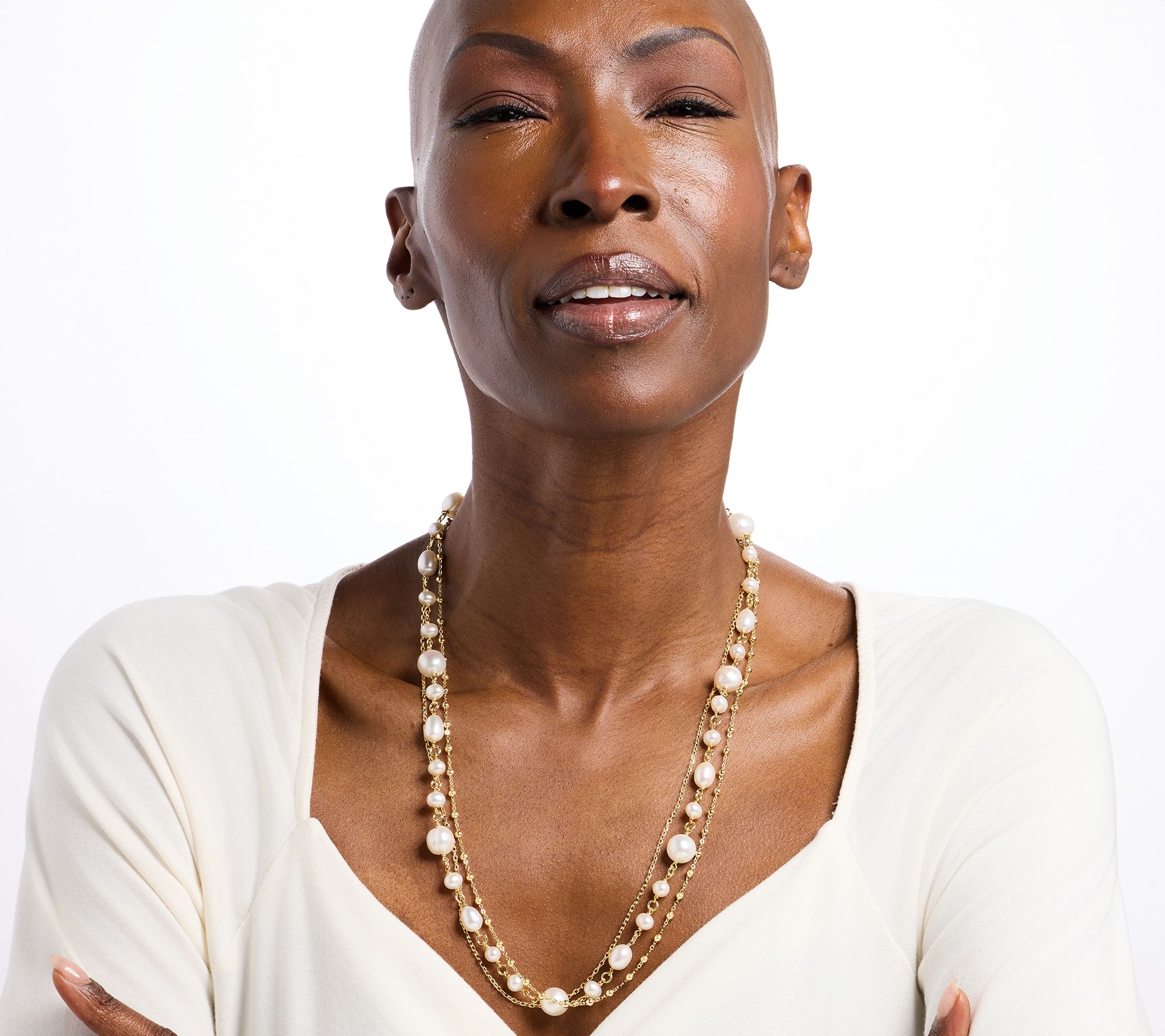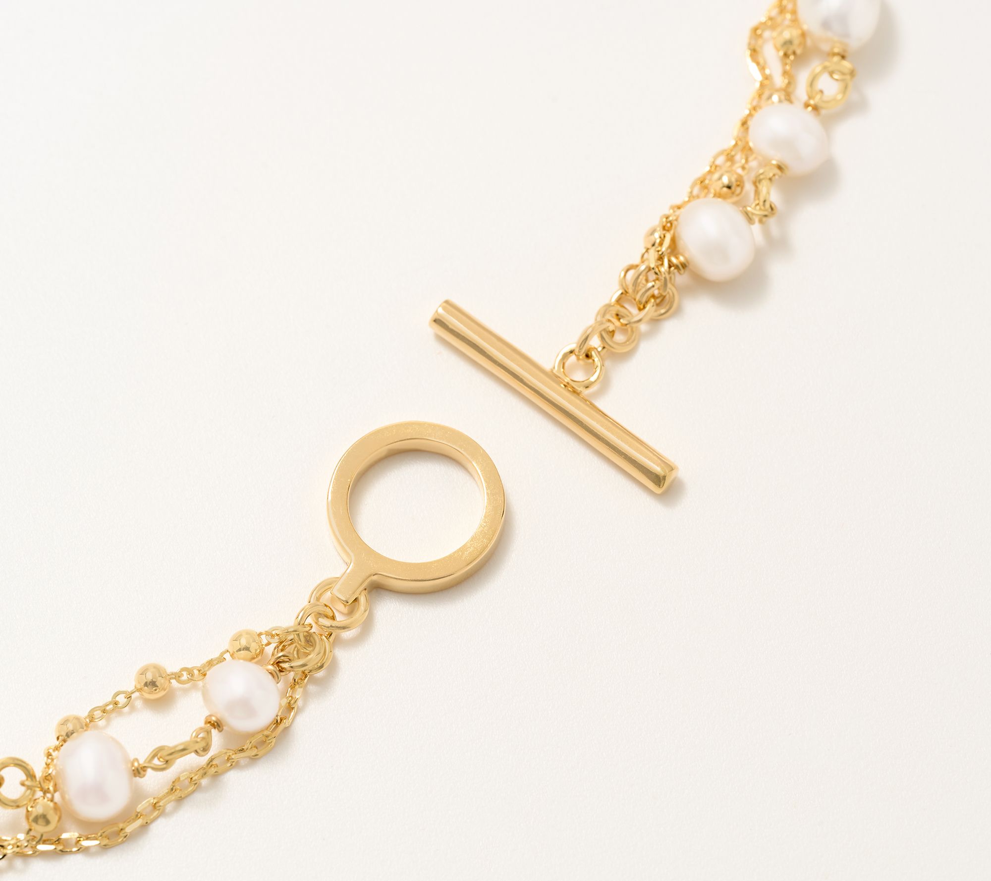 Glowing white cultured freshwater pearls in three distinct shapes grace each layer of this necklace, delivering timeless charm with every turn. The combination of ornate forzatina and bead-accented chains, finished with a chic toggle clasp, layers beautifully over a sweater, dress, or blouse for instant sophistication. From Honora.