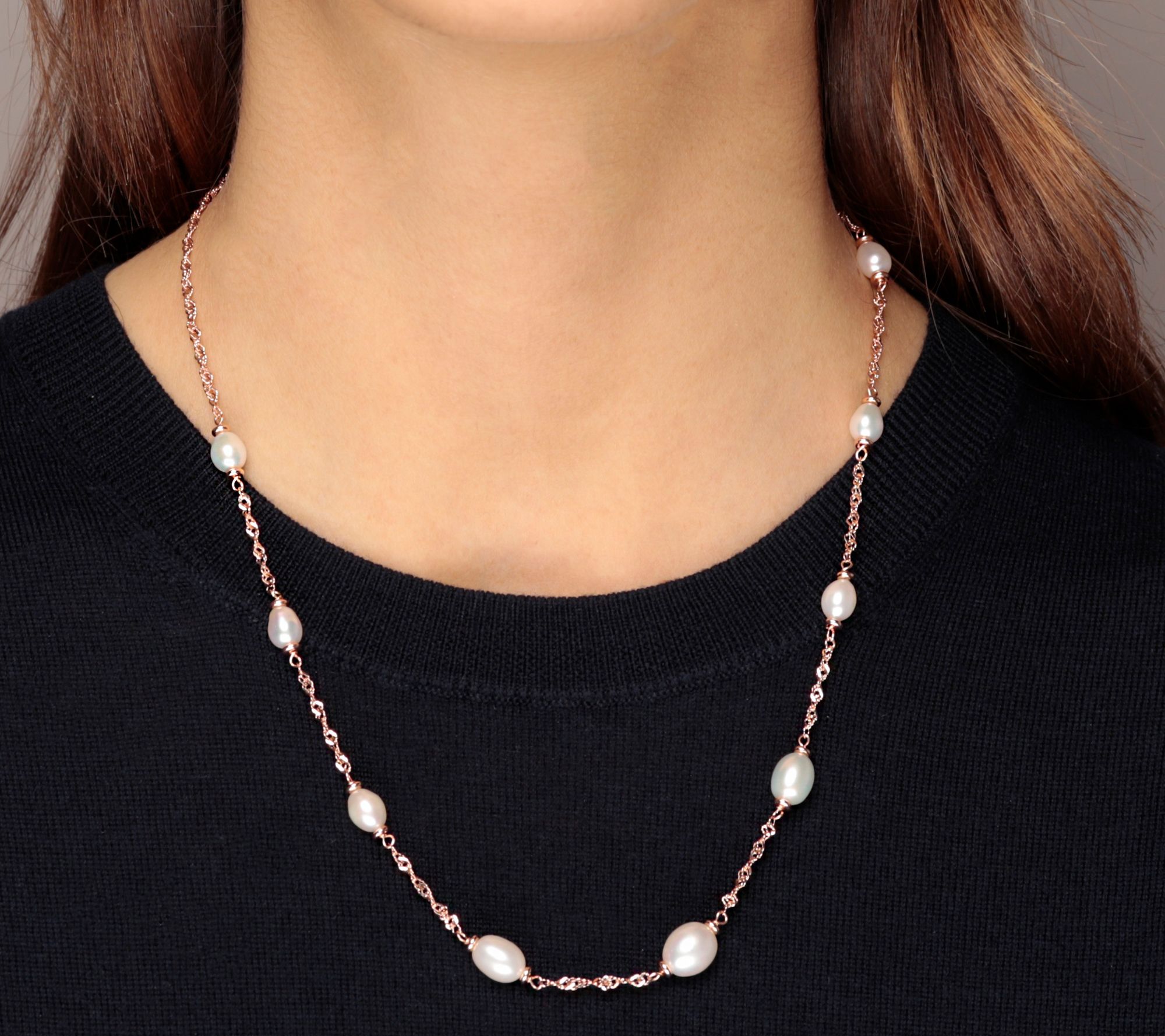 Change up your chained looks with this stunning necklace that adds an element of elegance with cultured freshwater pearl stations. From Honora.