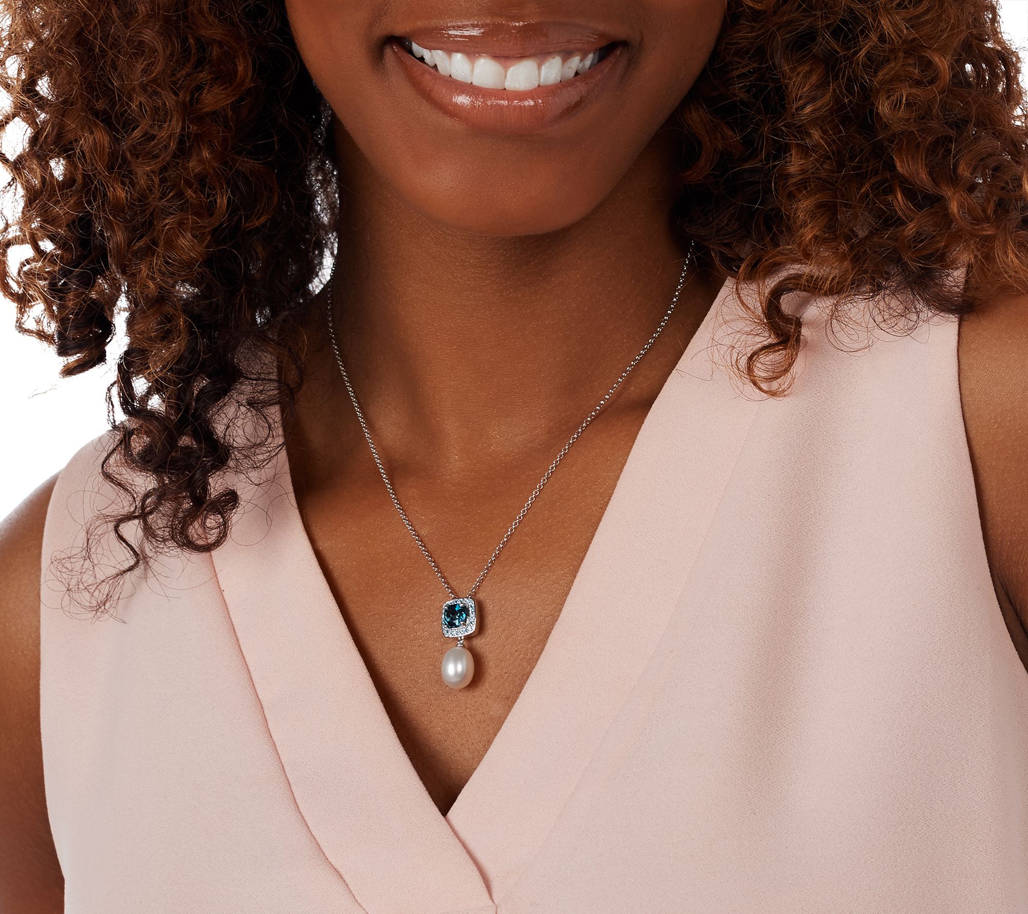 Ravishing meets refinement in this pendant design with a shimmering gemstone surrounded by a sparkling halo and accented with a classic, cultured freshwater pearl. From Honora.