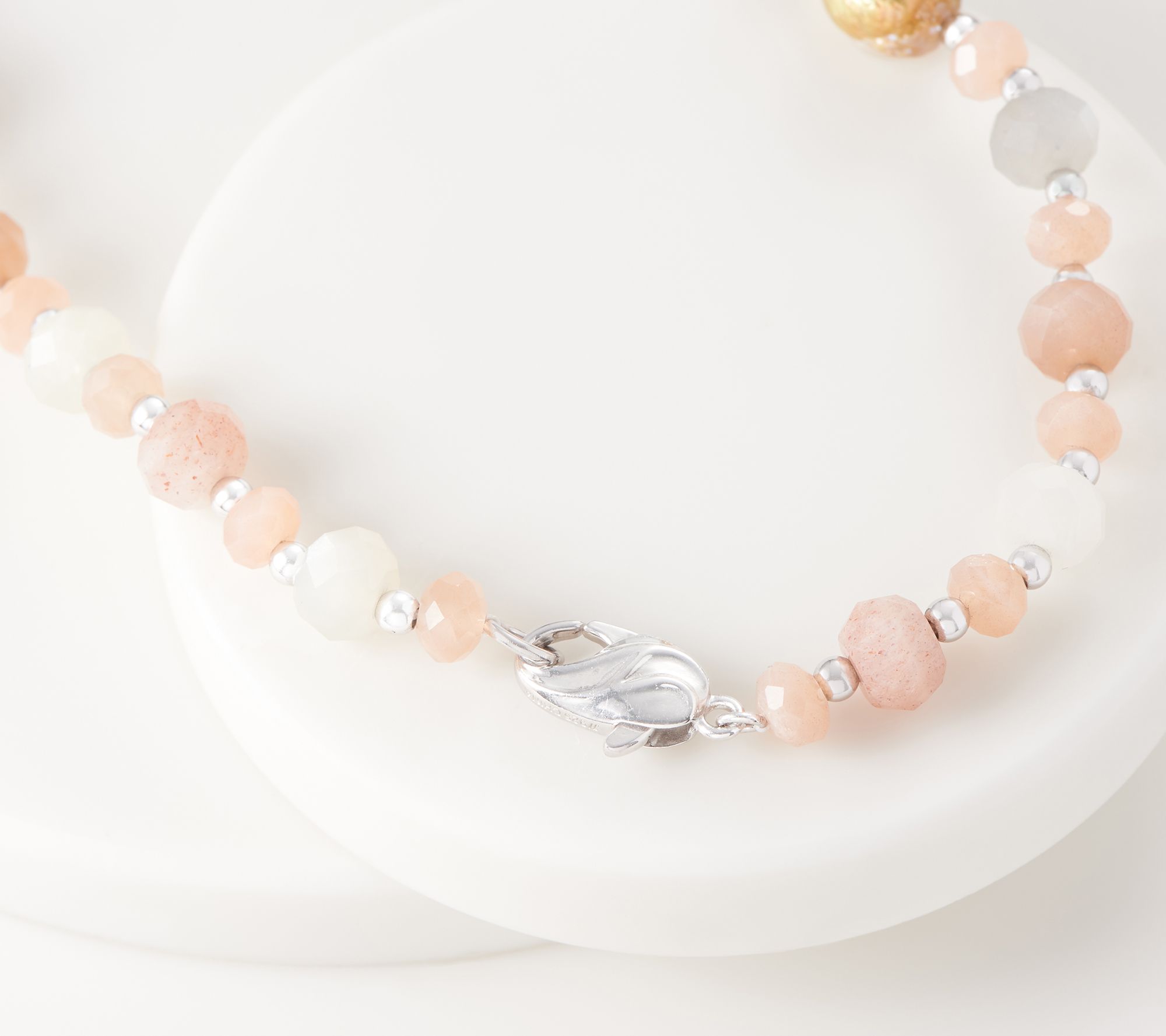 • Moonstone: pastel Ming cultured freshwater pearls