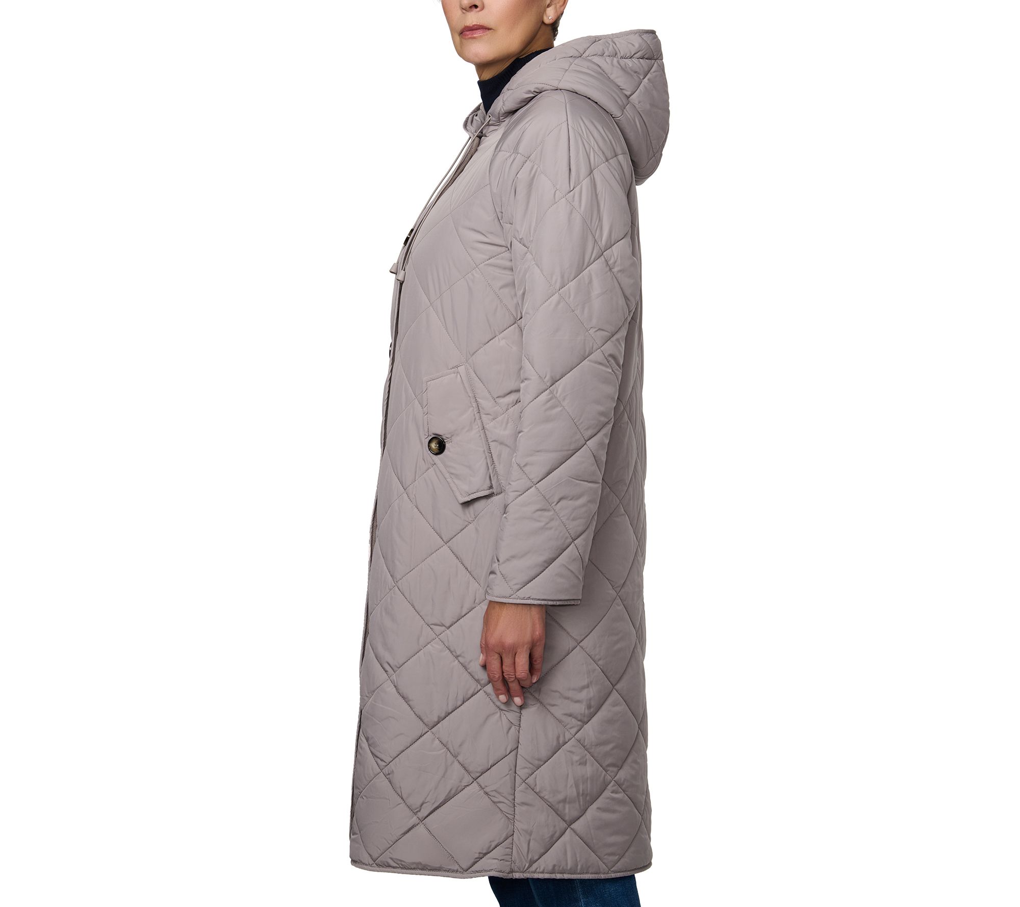 Crisp morning walks or chilly commutes get a stylish upgrade in this women's puffer coat. Diamond quilting pairs with a knee-length cut for warmth and extra coverage, while practical touches like a drawstring hood and welt pockets make every outing comfortable. Polished lines and effortless versatility transition seamlessly from errands to outdoor gatherings. From Bernardo.