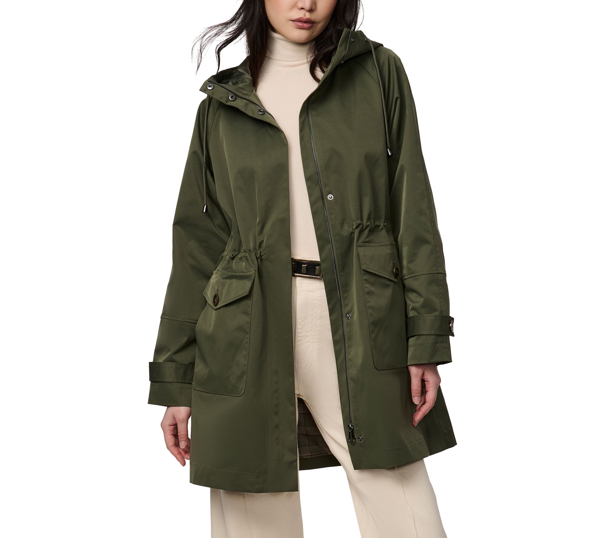 Chasing puddles or commuting through drizzle feels effortless in this woven raincoat, designed with a hood and roomy raglan sleeves for maximum coverage and comfort. Functional pockets keep essentials secure, while a drawcord waist lets you adjust the silhouette just how you like it -- ready for whatever the day brings. From Bernardo.