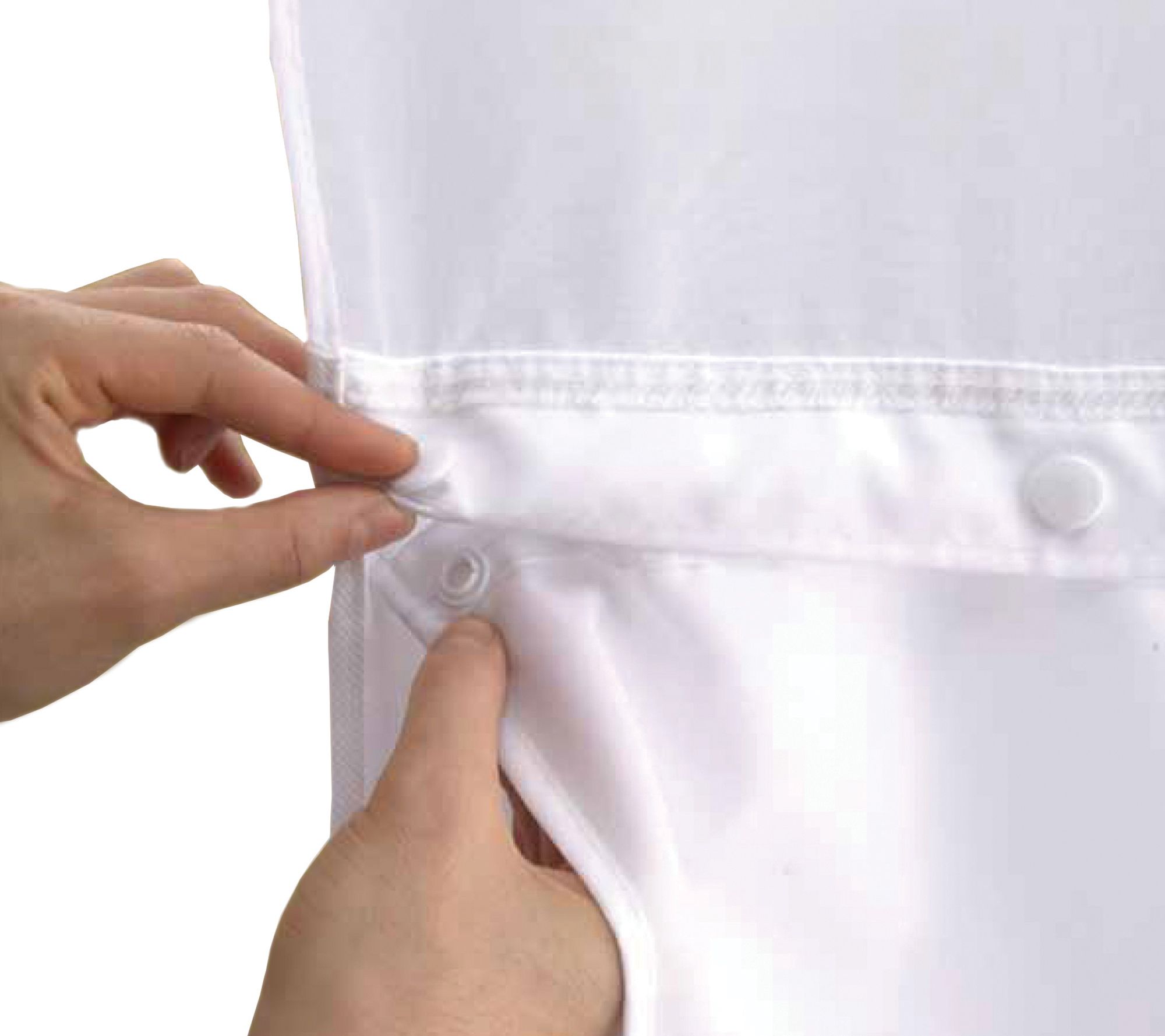 Clean your shower curtain liner in a snap! Designed for use with hookless shower curtains, this fabric replacement liner snaps in and out for easy removal and cleaning. With this liner, you're off the hook!
