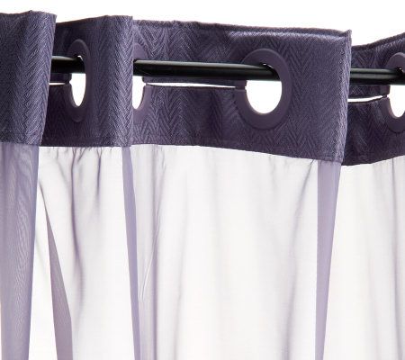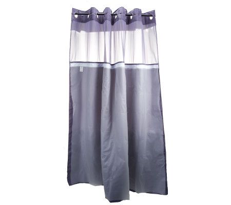 Instant bathroom makeover. All it takes is this attractive shower curtain. The hookless curtain features a glossy herringbone design, a snap-in liner, and coordinating rings to create a fresh, new look.