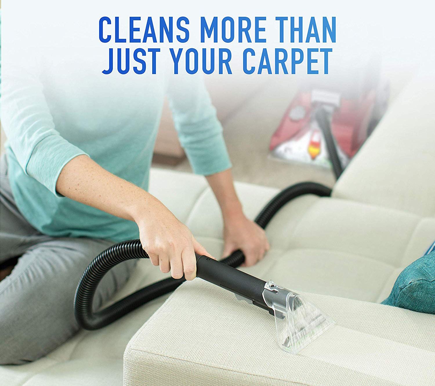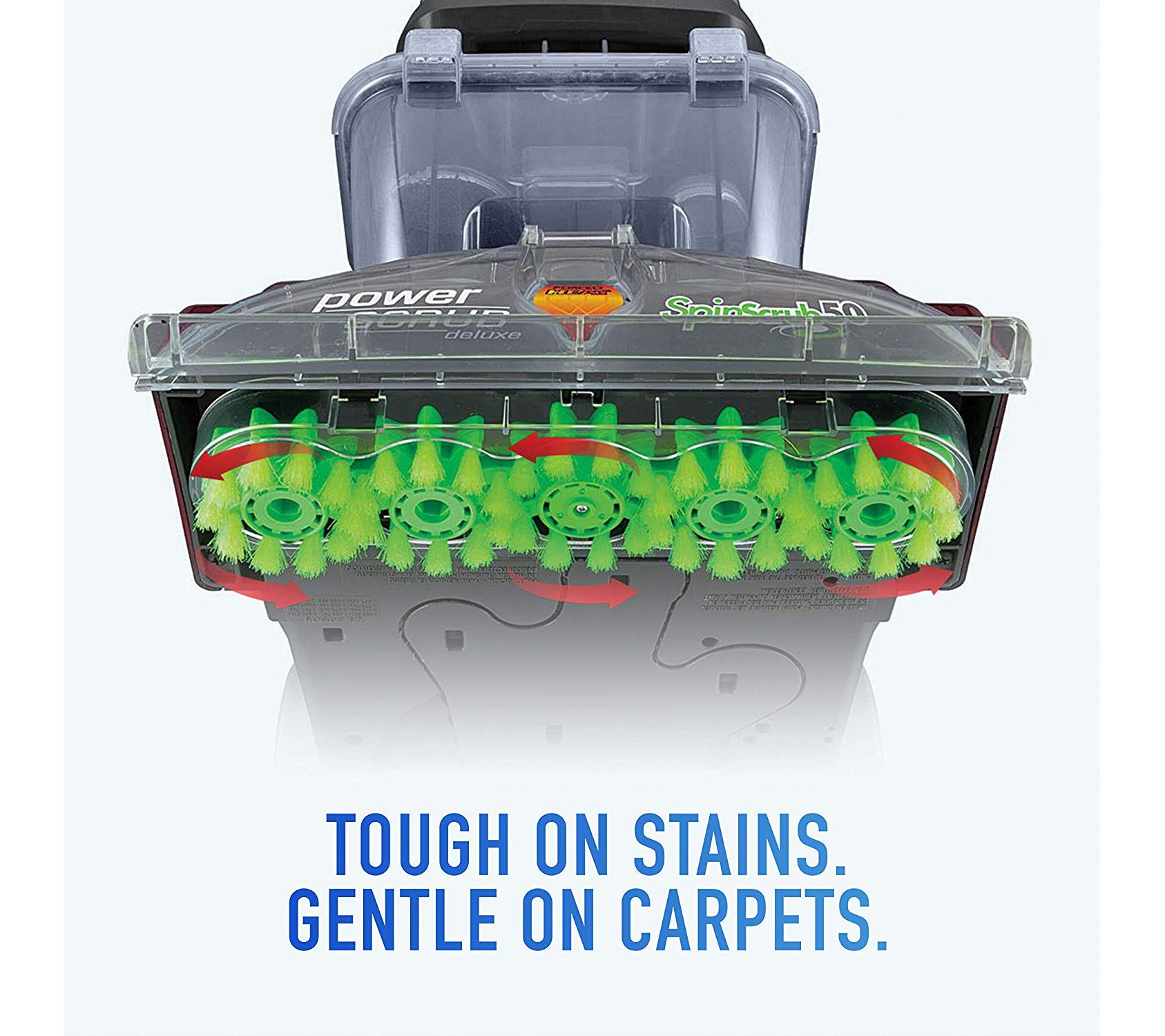 Designed to clean carpeted and fabric surfaces around your home, the Hoover Carpet Basics Power Scrub Deluxe carpet washer features SpinScrub technology for 360-degree cleaning and a multi-brush system with counter rotating brushes. From Hoover.