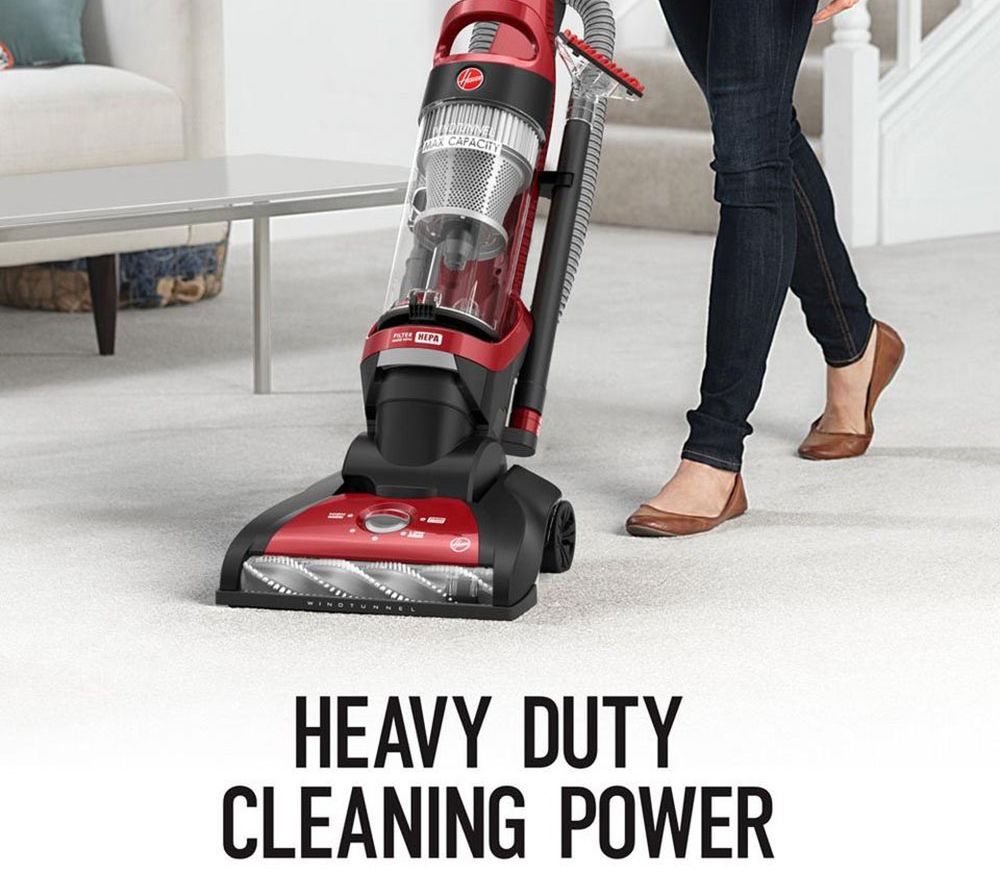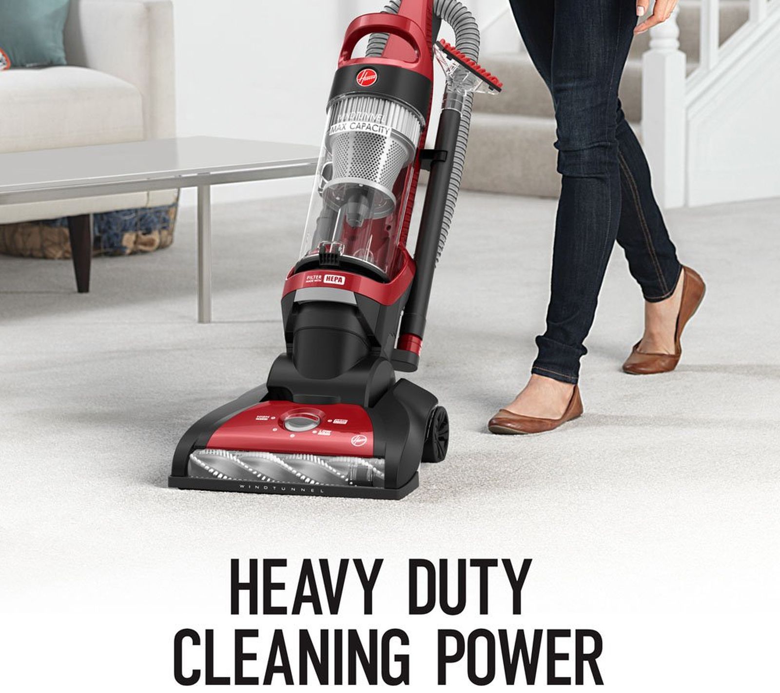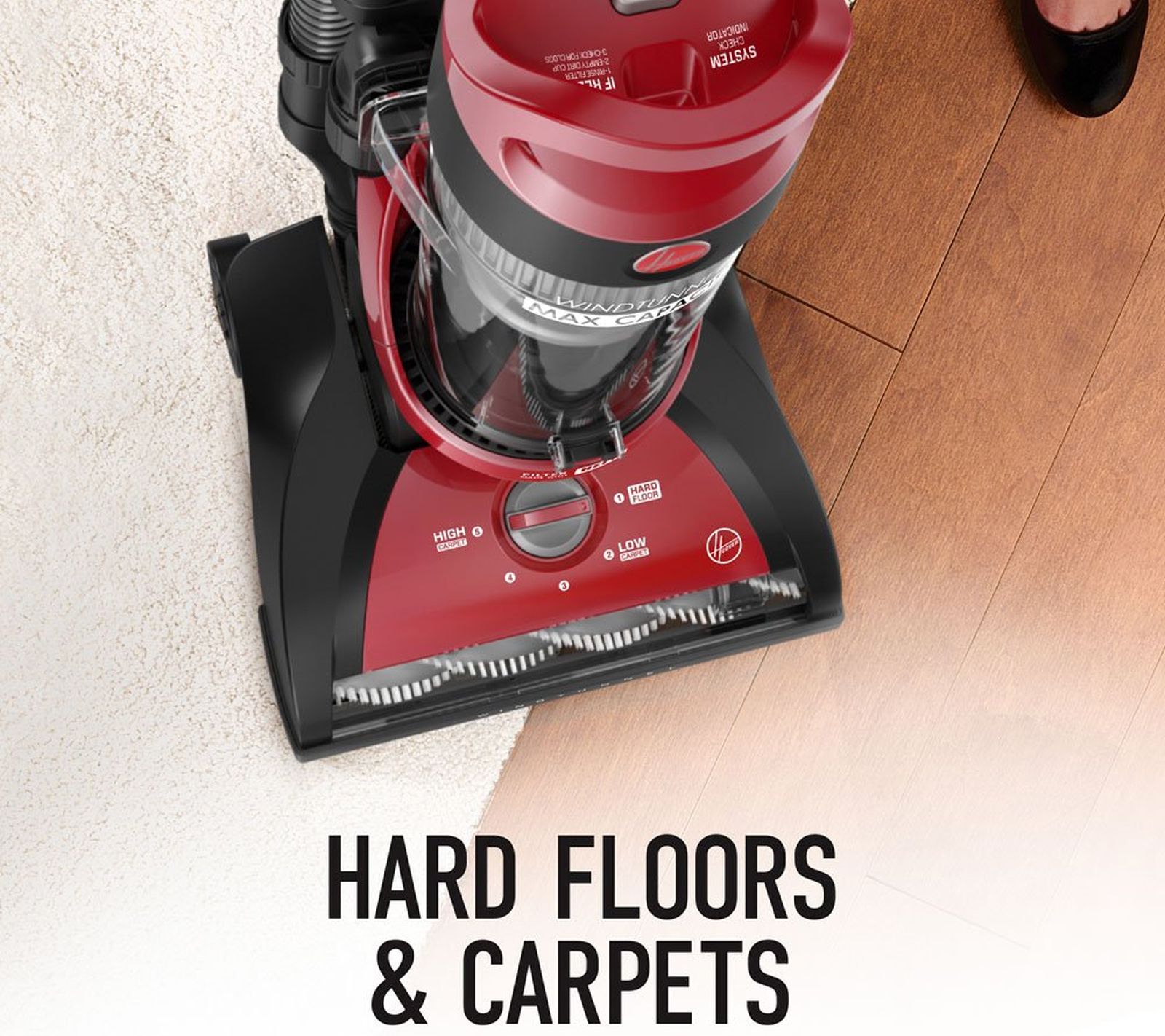Equipped with everything you need for a heavy duty clean from floor to ceiling, the WindTunnel Max Capacity vacuum lets you confidently power through messes on any floor type. Use the extension wand and above floor tools to get into tight, hard-to-reach places with ease. From Hoover.
