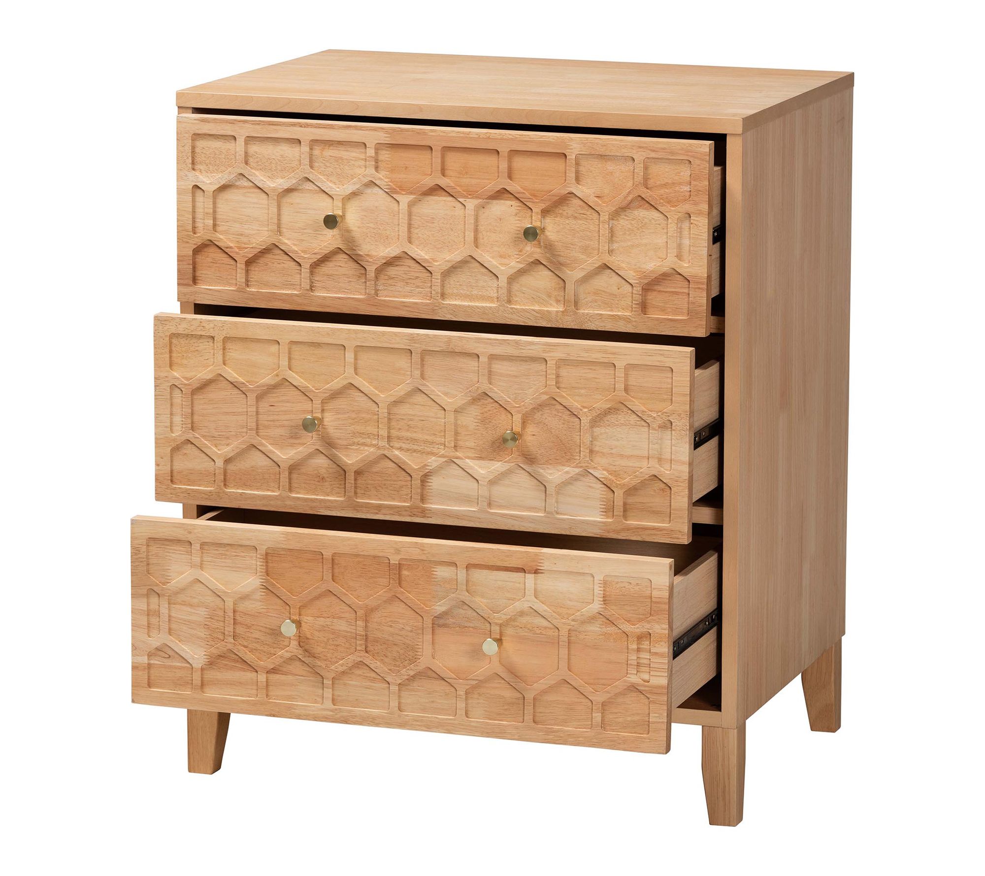 Hosea Carved Honeycomb Natural 3-Drawer Chest