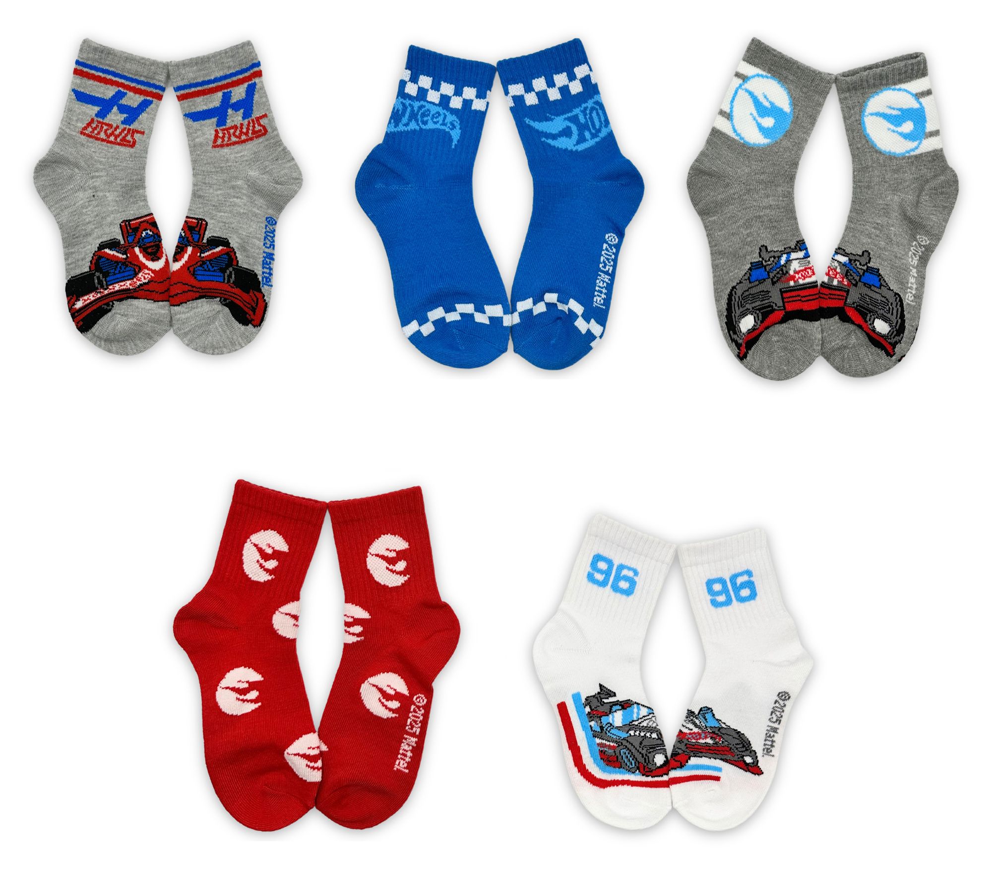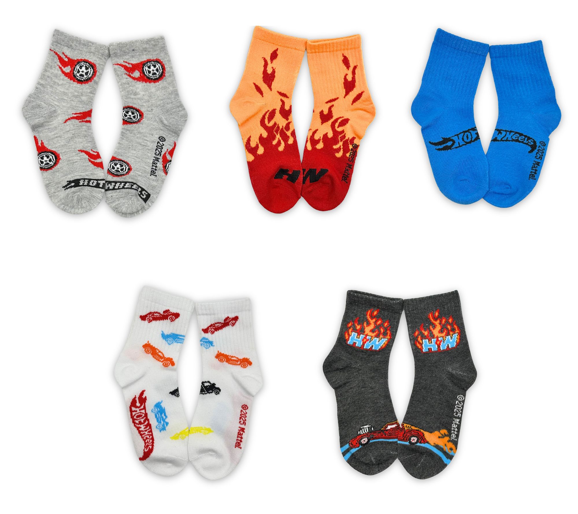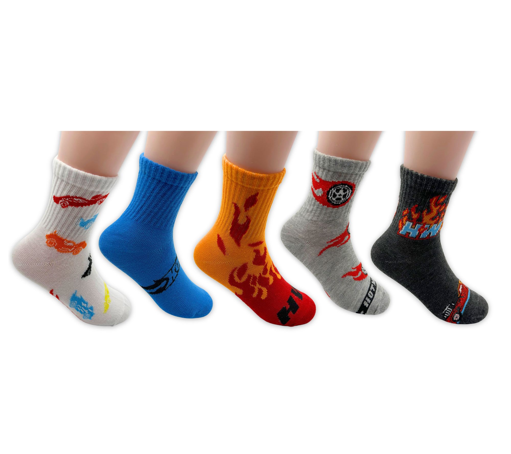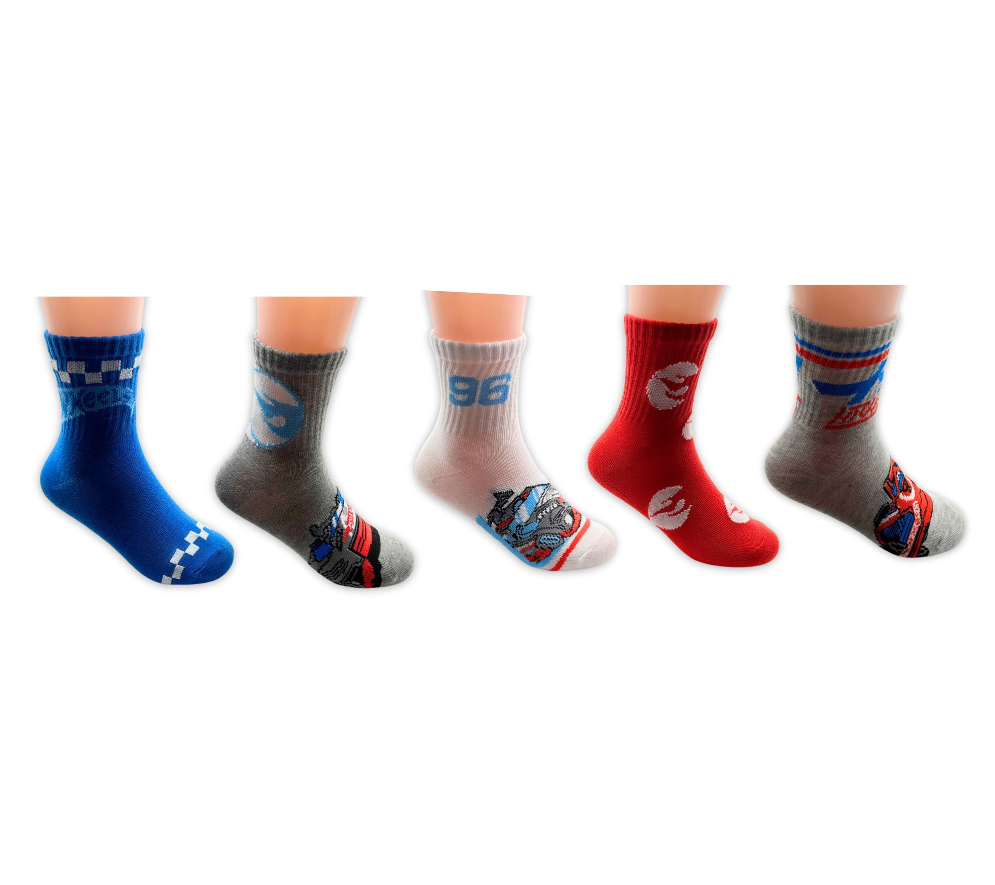 Hot Wheels Boys' Set of 5 Mid-Crew Ribbed SockSet