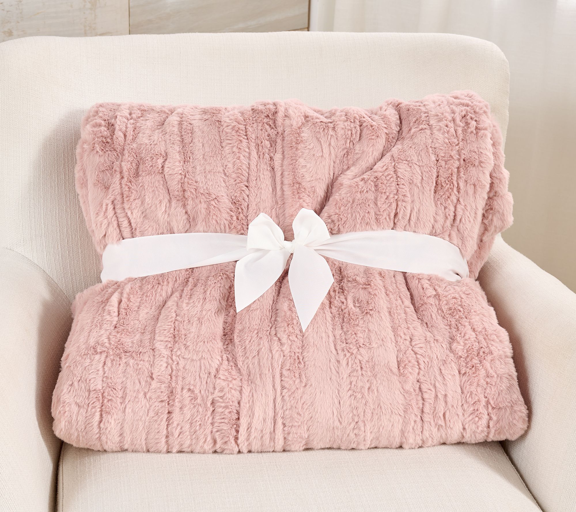 Bring a touch of luxury to your living space with this sculpted faux-fur throw from Hotel du Cobb by Dennis Basso. Whether in the bedroom or family room, its generous oversized design invites you to wrap yourself up while relaxing with a book or enjoying an afternoon nap. From Hotel du Cobb by Dennis Basso.