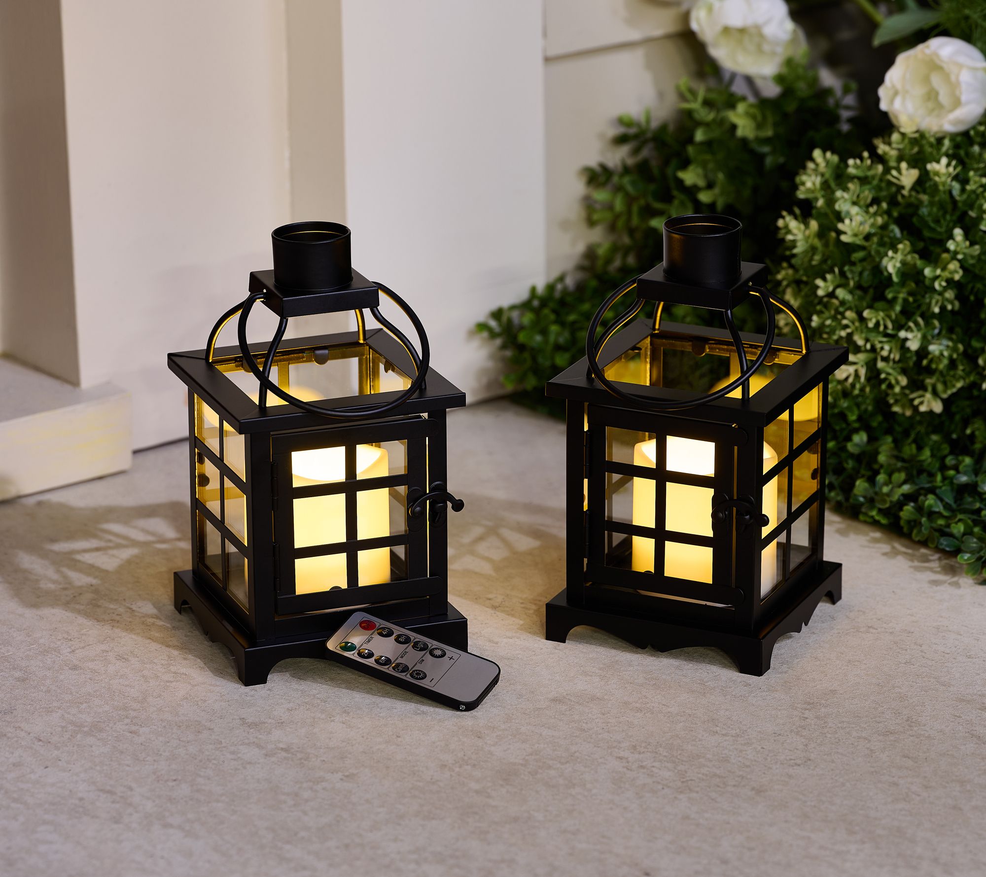 Includes two mini lanterns with LED candles and remote
