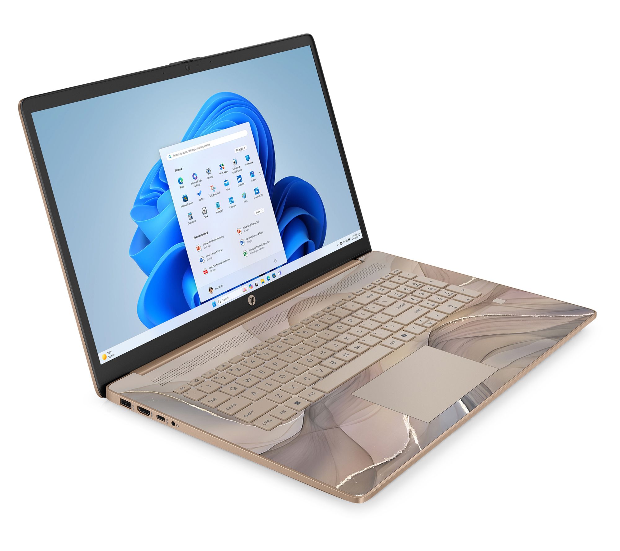 Includes HP 17-cn3252ds touch laptop, power adapter, and wireless mouse; voucher