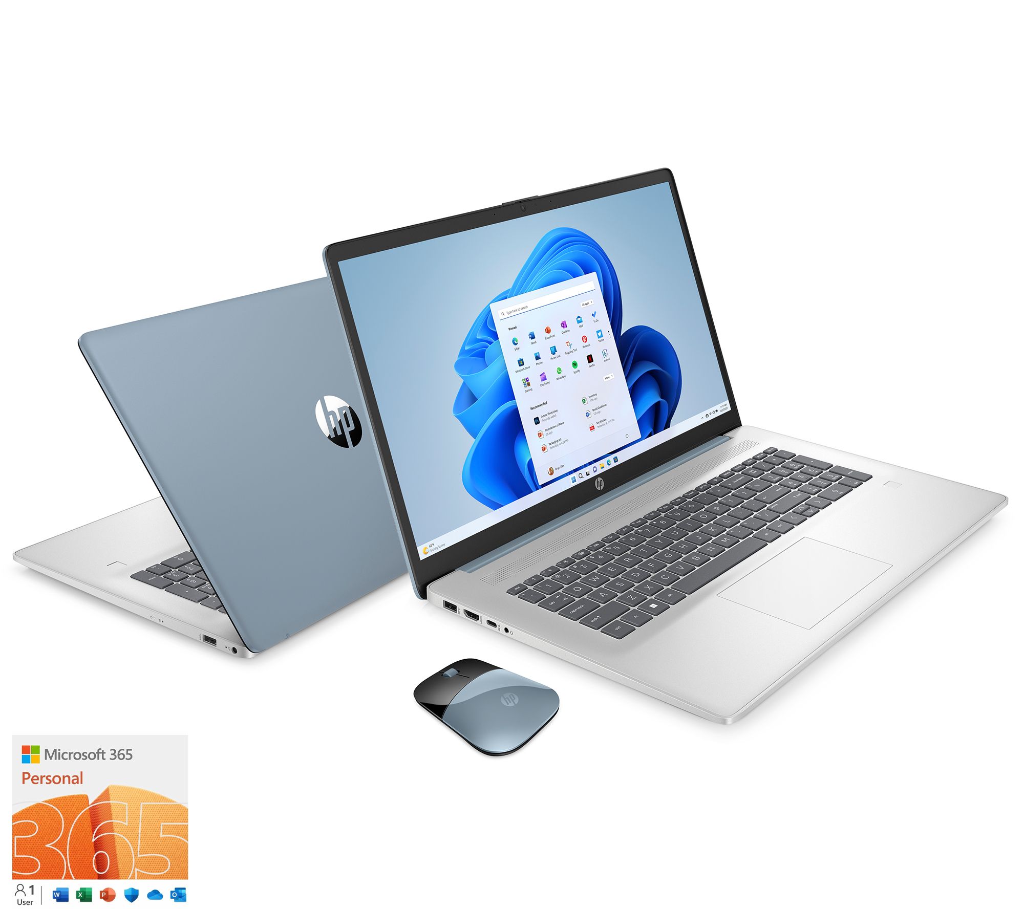 Includes 17-cp0311ds laptop with AC adapter with HP wireless mouse; voucher